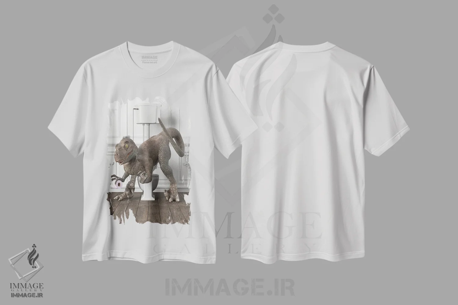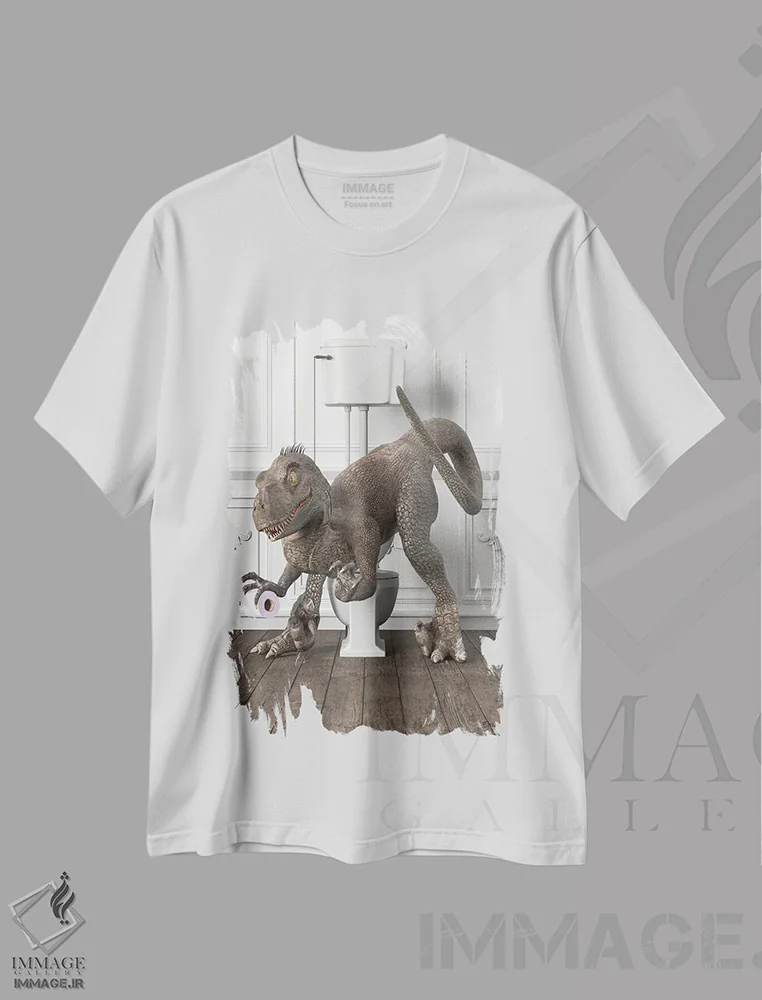 تی شرت طنز «ولوسی رپتور در توالت»؛ هنر دیجیتال با چاشنی وینتیج