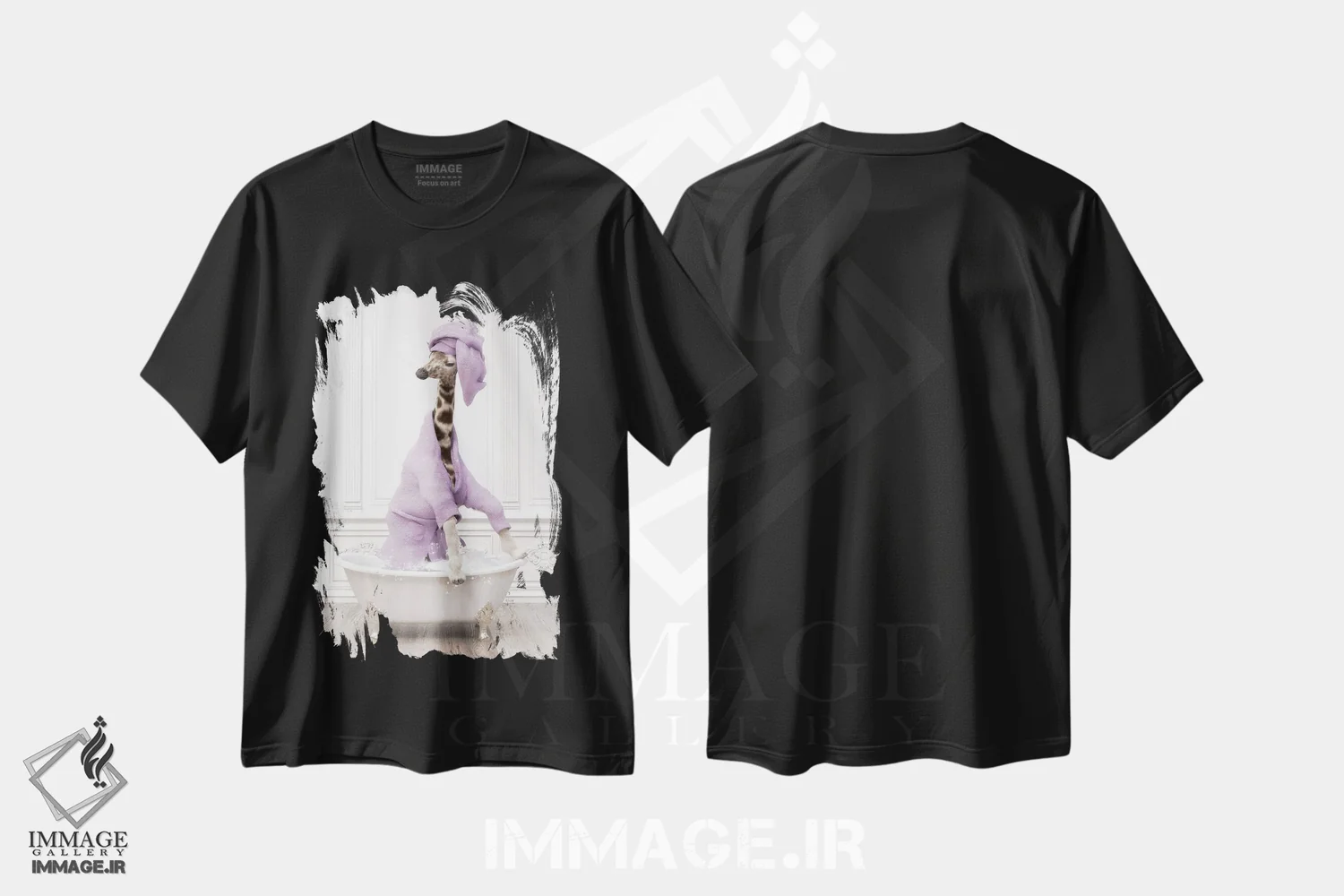 استایل شاد با تی شرت «زرافه در حمام با حوله»