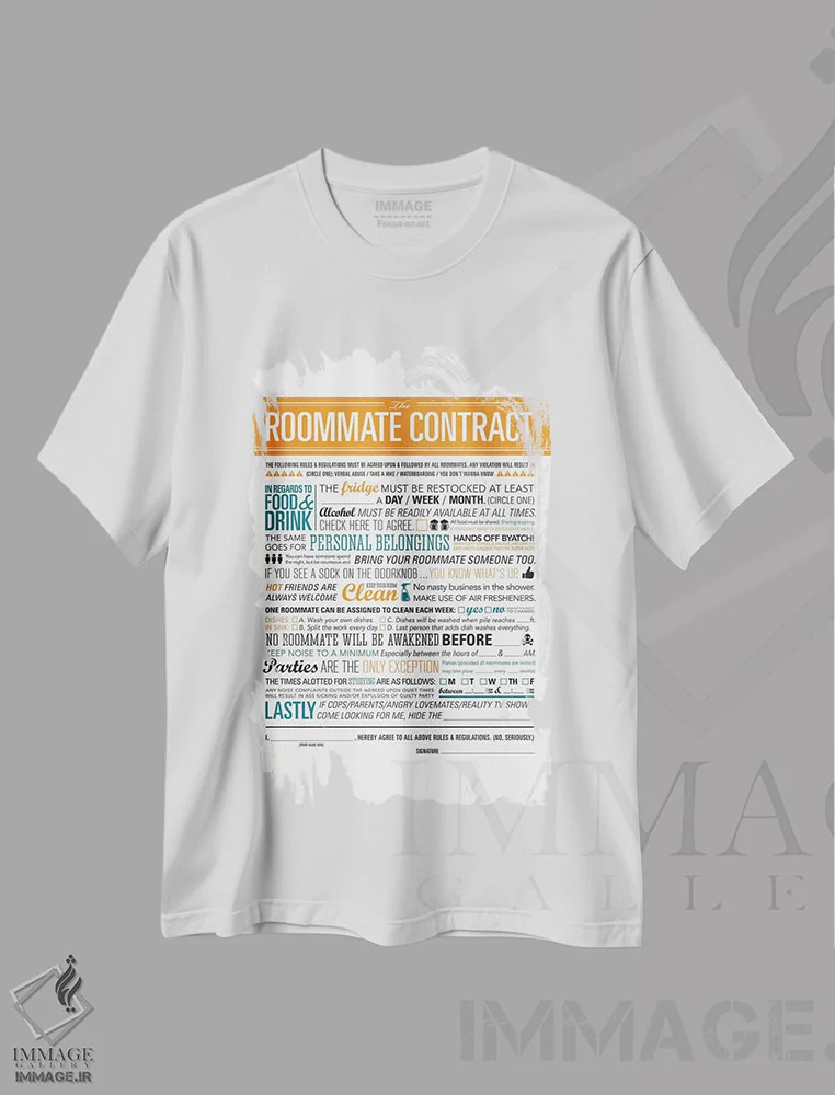 تی شرت طنز «قرارداد هم اتاقی» با چاپ تایپوگرافی