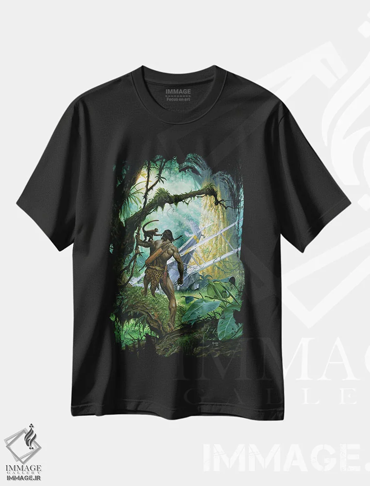 تیشرت مشکی طرح دار جستجوی تارزان، وینتیج و رترو اثر جو جوسکو | immage.ir