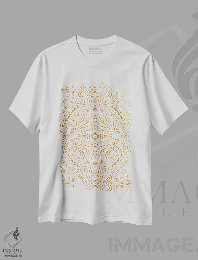 تیشرت سفید طرح دار سفید و نارنجی مخفیانه، آبستره اثر ژاکلین مالدونادو | immage.ir