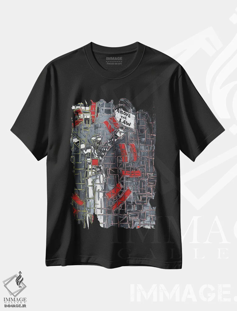 تیشرت مشکی طرح دار فراتر از قانون، هنر فاخر معاصر اثر یواخیم مک میلان | فروشگاه ایماژ