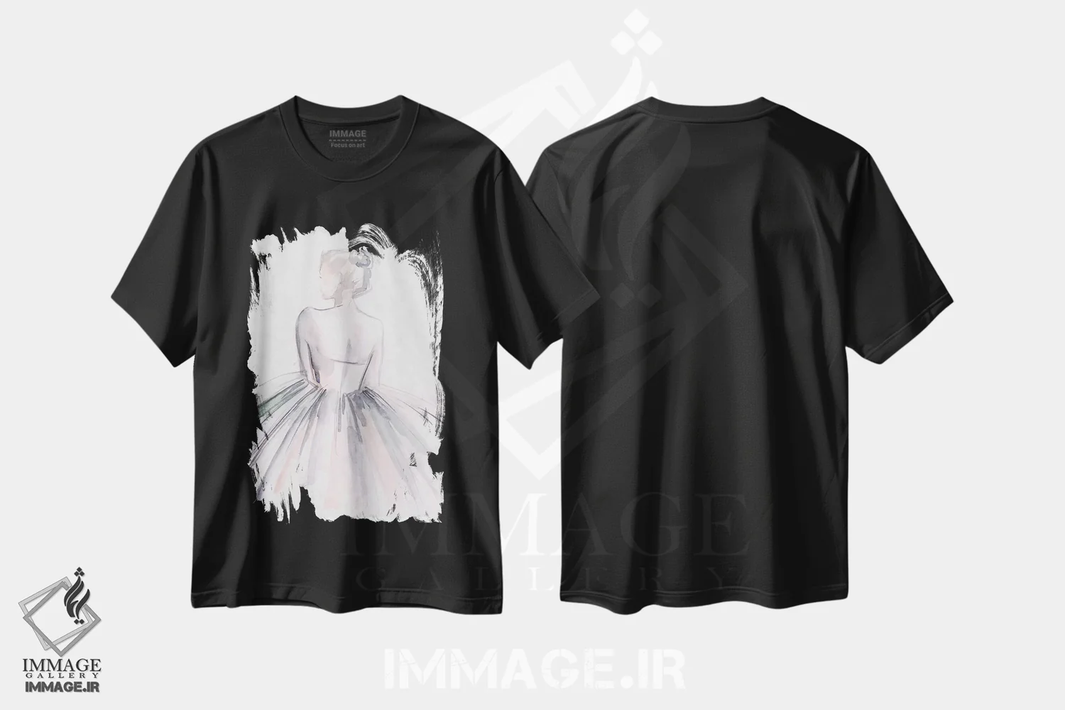 تیشرت مشکی طرح دار رقاص باله با آبرنگ ۱، تزئینی اثر جنیفر پکستون پارکر | فروشگاه ایماژ