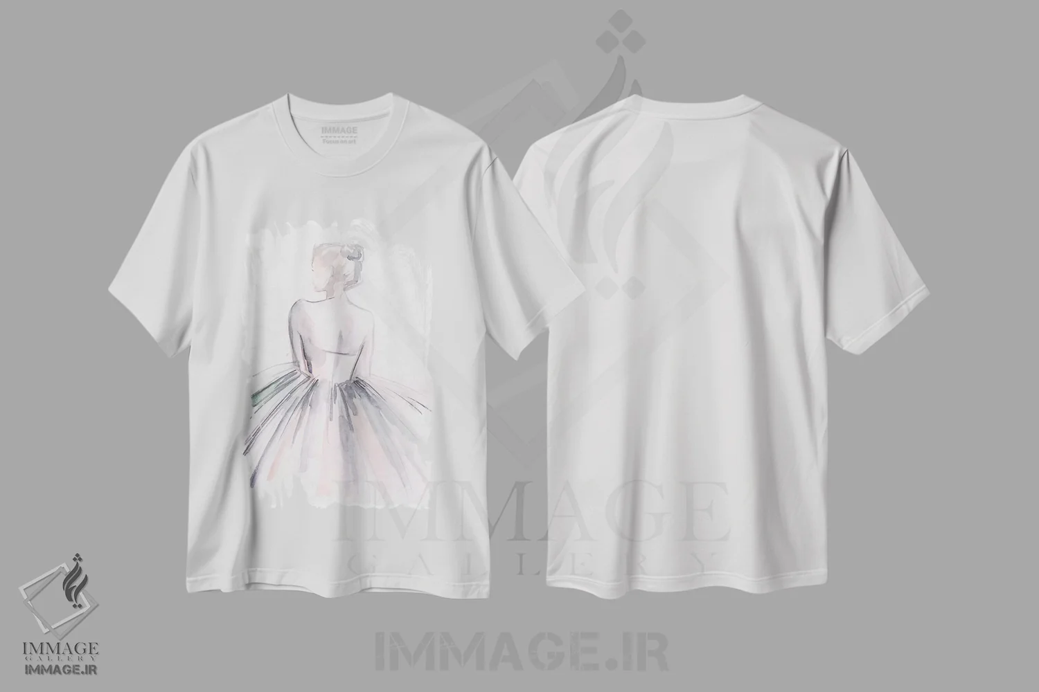 تیشرت سفید طرح دار رقاص باله با آبرنگ ۱، تزئینی اثر جنیفر پکستون پارکر | immage.ir