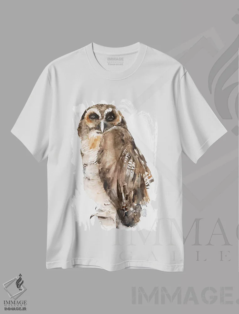 تی شرت هنری «جغد با آبرنگ ۱» و ایده های ست پاییزی