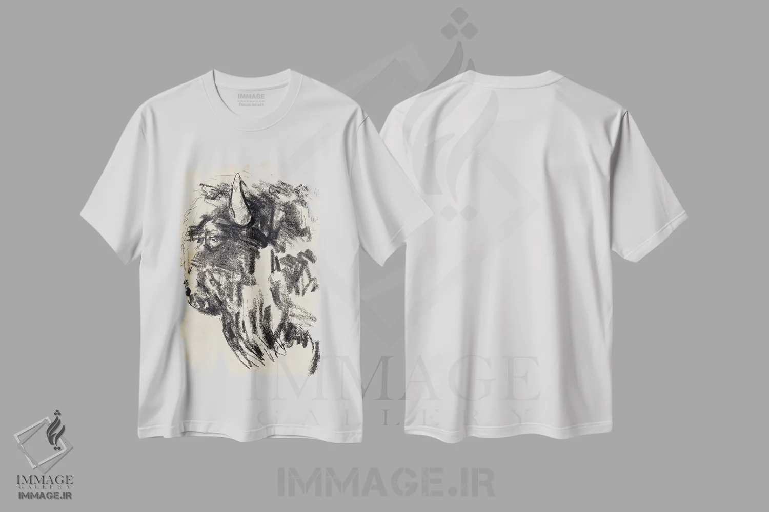 تیشرت طرح دار اشاره سر گاومیش کوهان دار اثر جنیفر پکستون پارکر