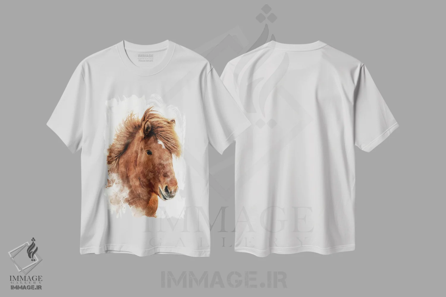 تیشرت سفید طرح دار آبرنگ اسب بلوطی ایسلندی، مدیوم اثر جین ریکس | فروشگاه ایماژ