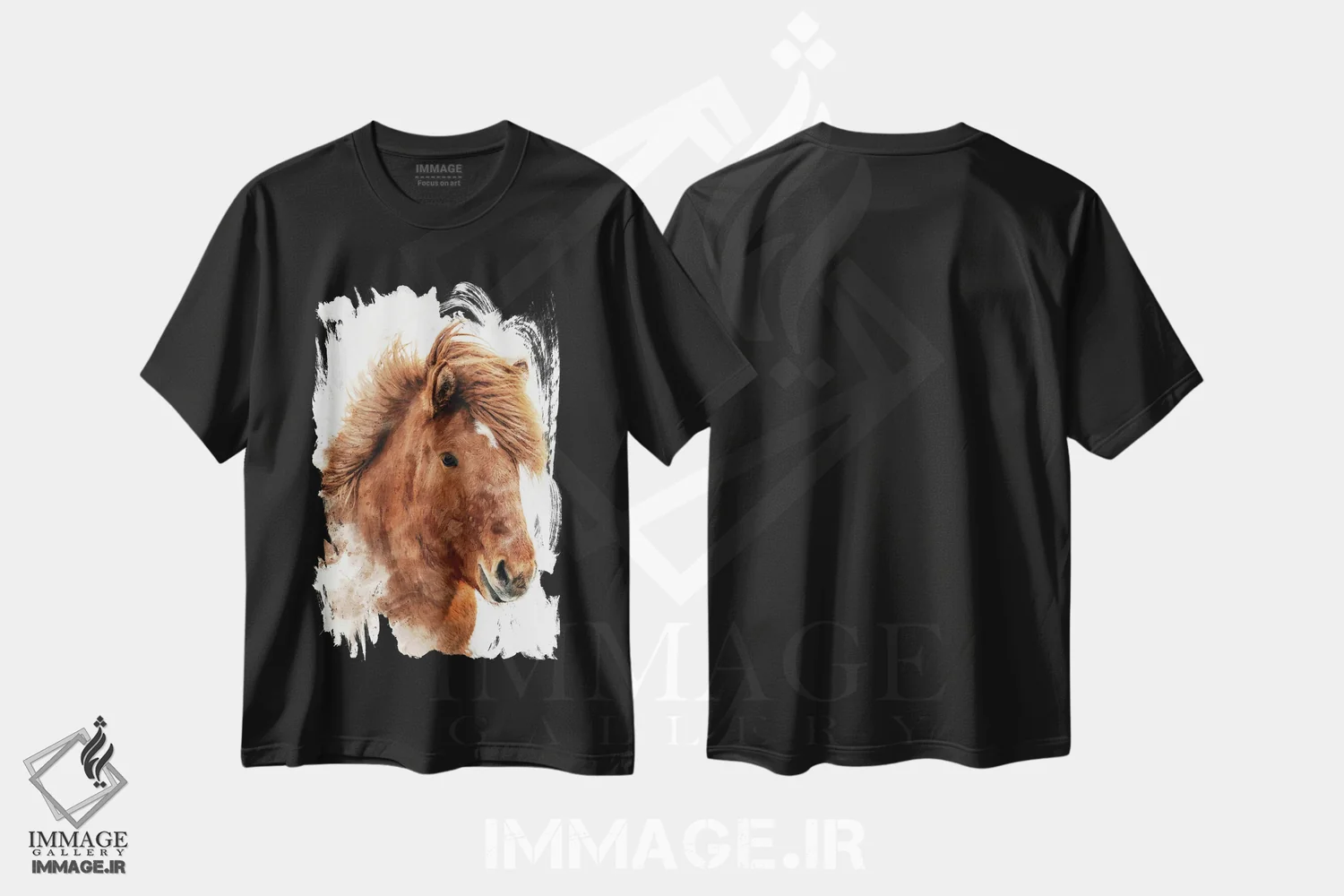 تیشرت مشکی طرح دار آبرنگ اسب بلوطی ایسلندی، مدیوم اثر جین ریکس | immage.ir