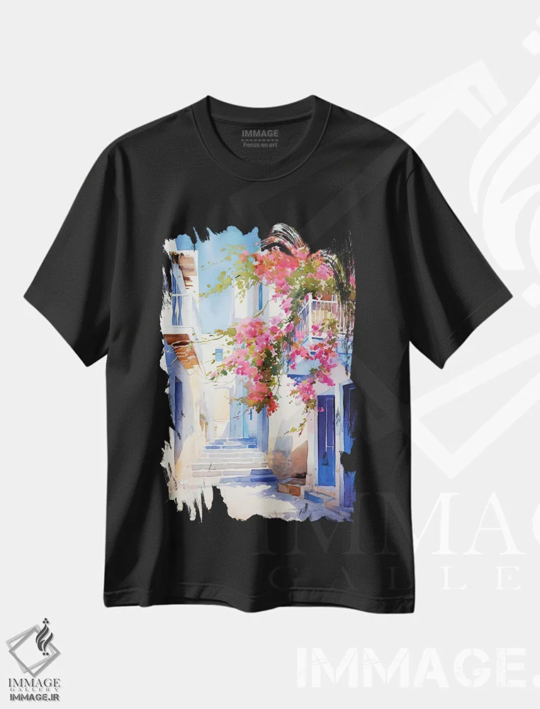 کوچه آبرنگی یونان؛ تی شرت شاعرانه با پیشنهاد ست تابستانی