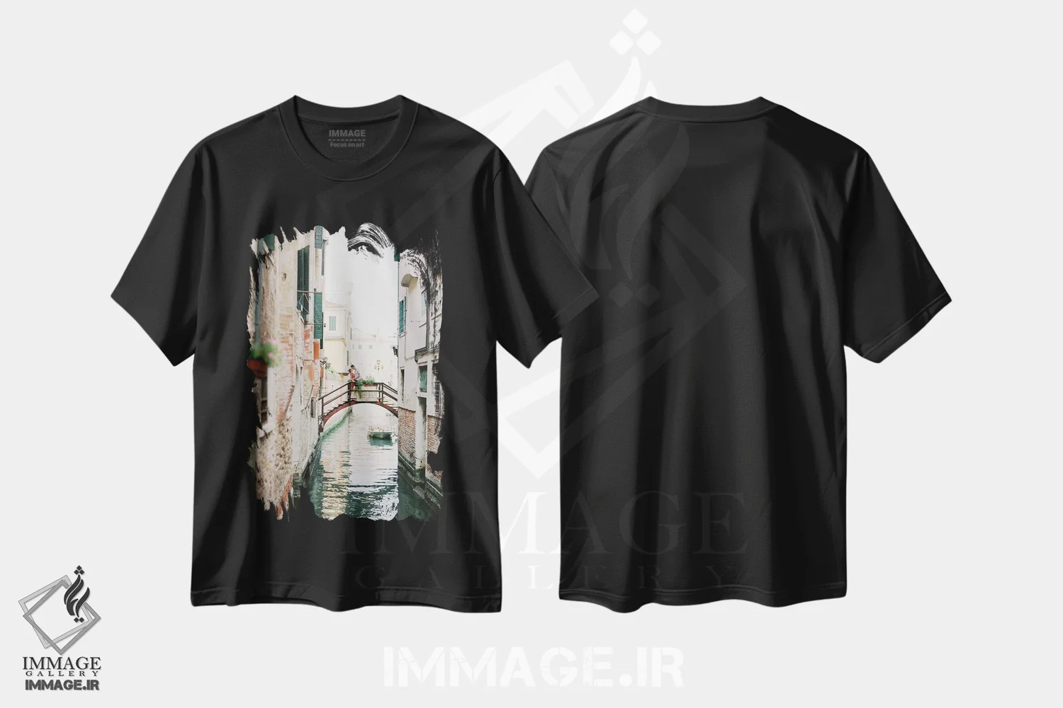 تیشرت مشکی طرح دار گشت زنی در کانال های ونیز، مدیوم اثر جاستین میلتون | immage.ir
