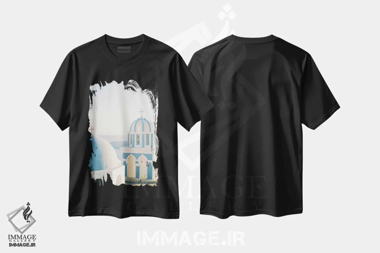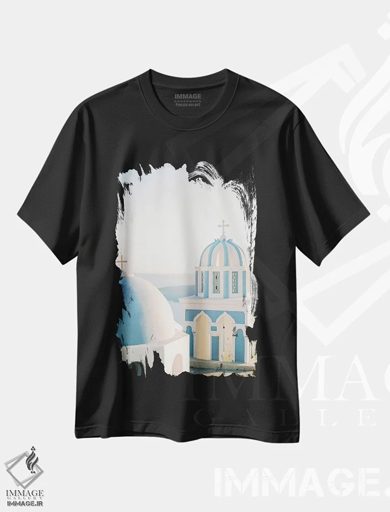 تیشرت طرح دار کلیسای سانتورینی اثر جاستین میلتون