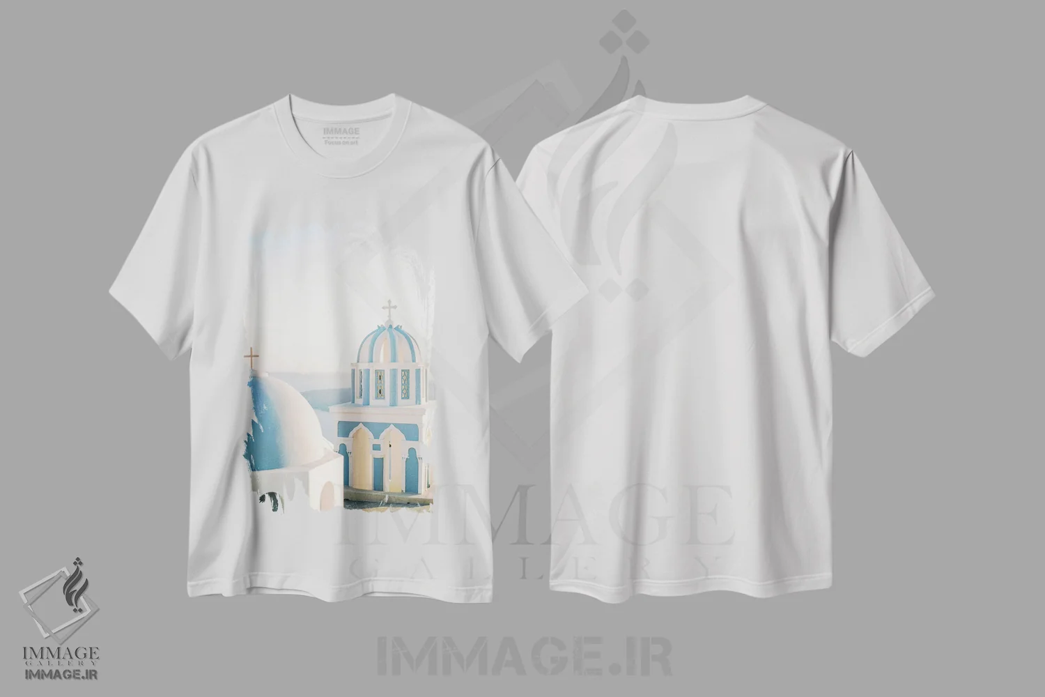 کلیسای سانتورینی؛ تی شرت معماری مدیترانه با ایده های ست