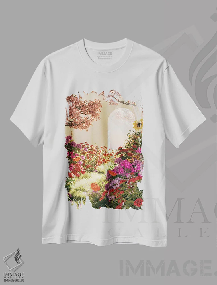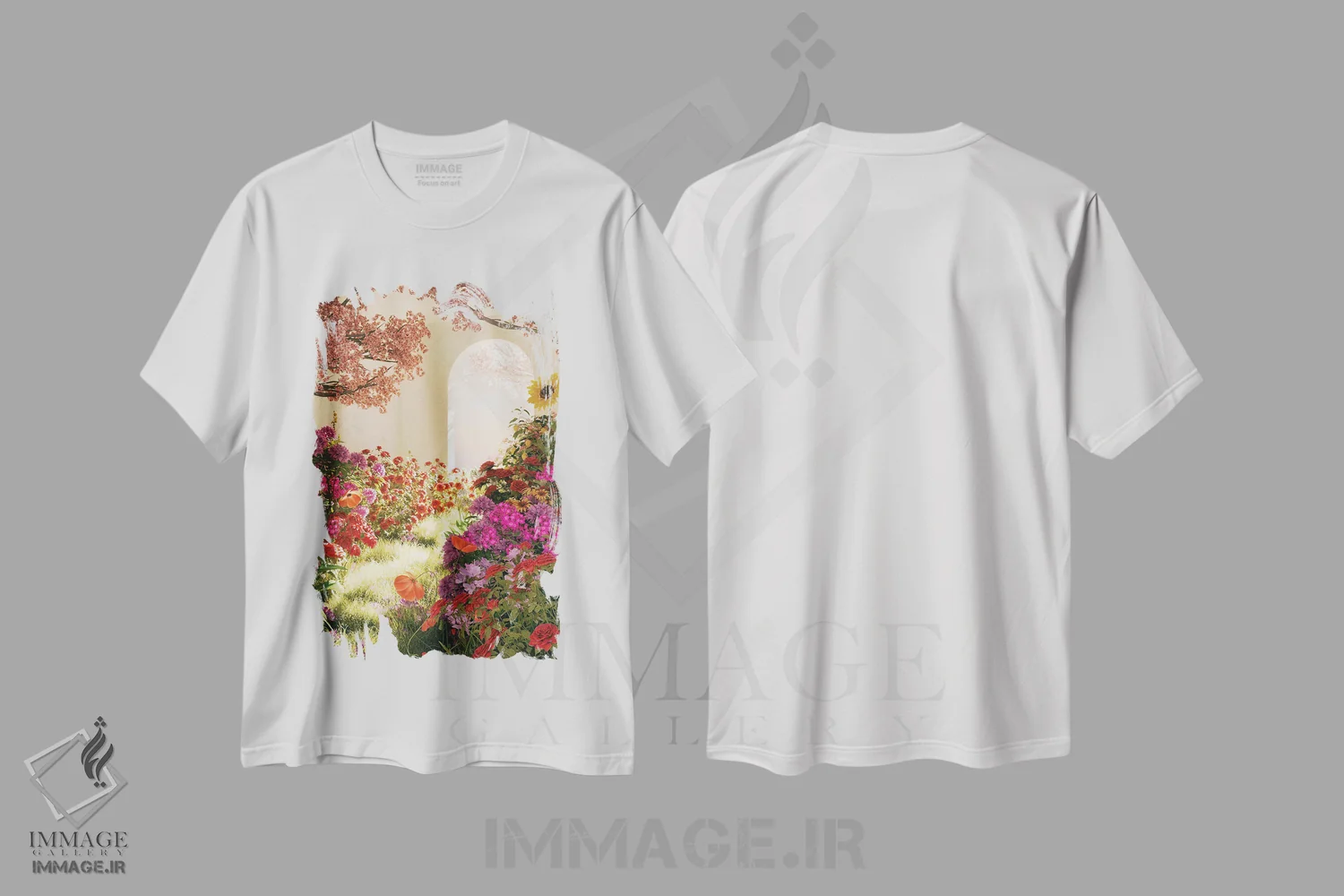 تیشرت سفید طرح دار ورودی با گل ها، عکاسی ترکیبی اثر جیمز ترالی | immage.ir