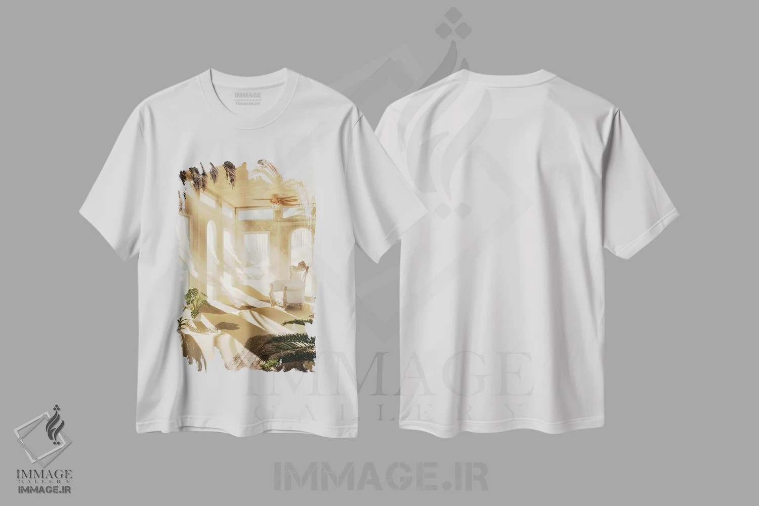 تیشرت سفید طرح دار واحه کویری، عکاسی ترکیبی اثر جیمز ترالی | فروشگاه ایماژ