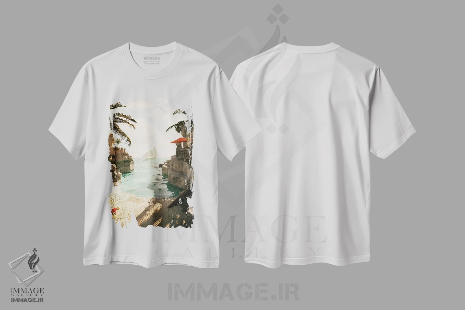 تیشرت سفید طرح دار کالانک، دکور ساحلی اثر جیمز ترالی | فروشگاه ایماژ