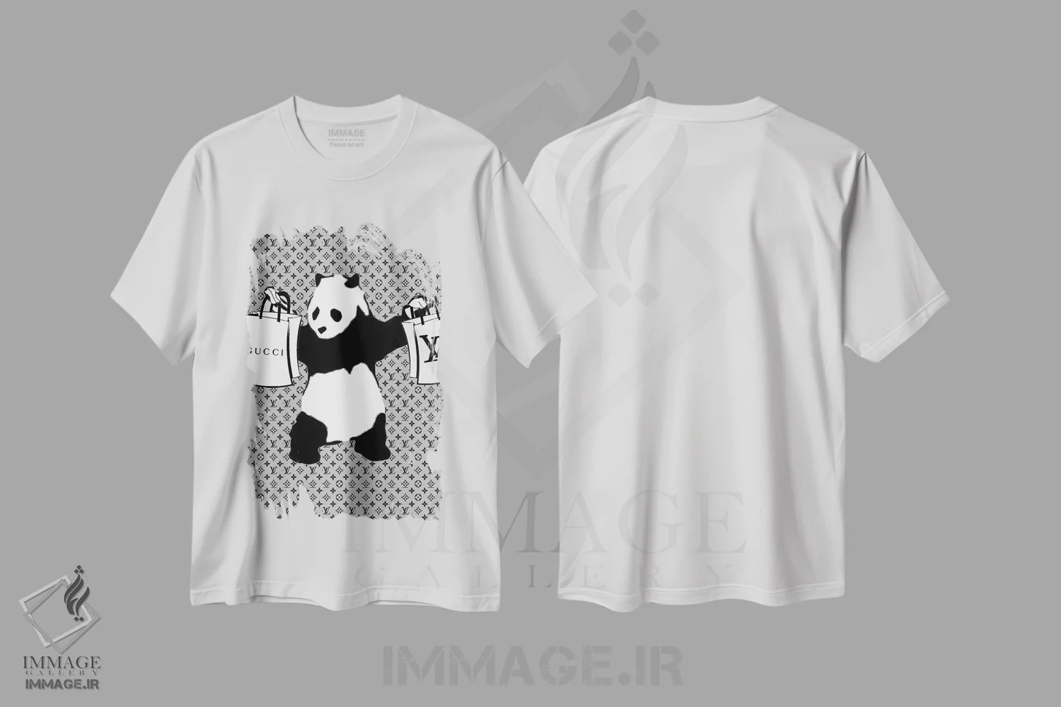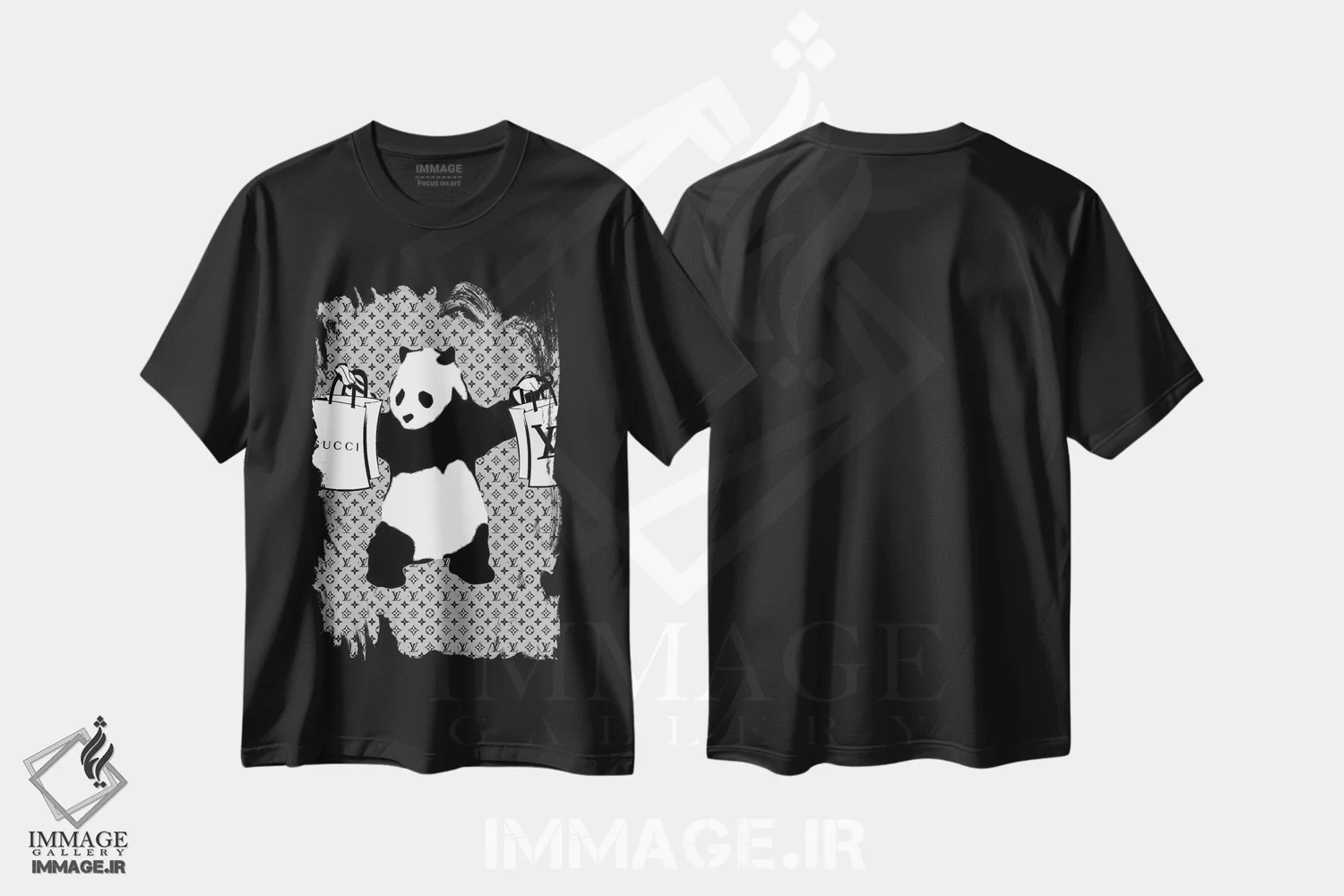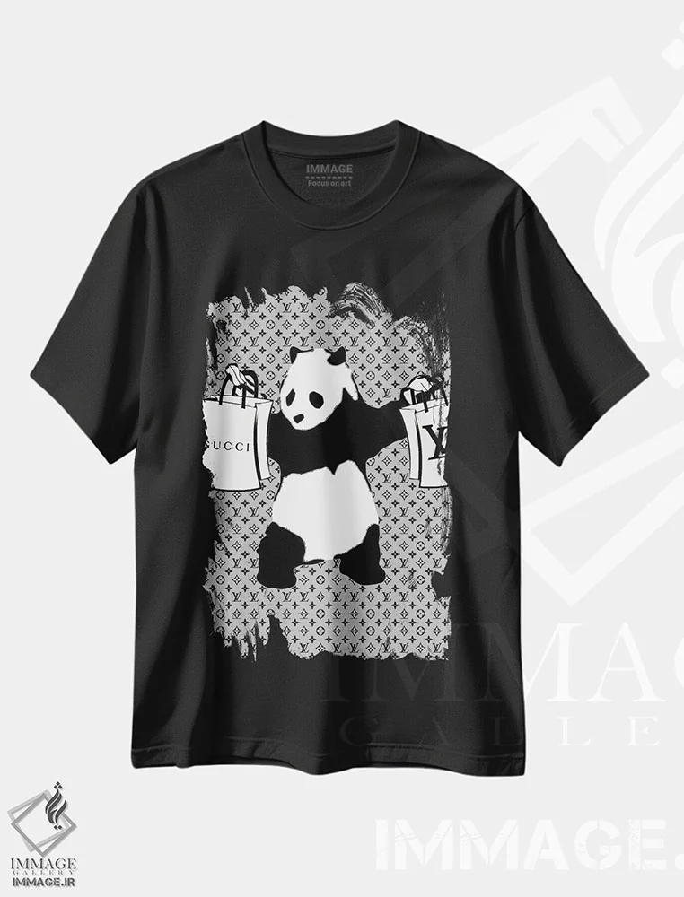 تی شرت «پاندای مسلح با کیف گل دار»؛ هنر خیابانی سیاه وسفید