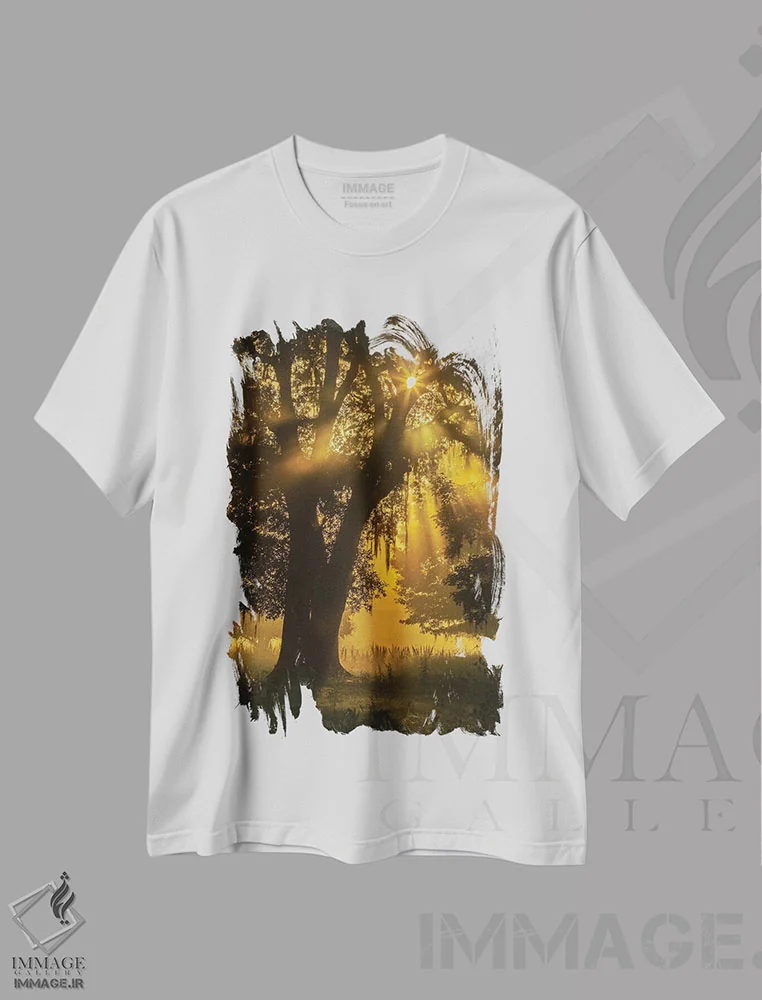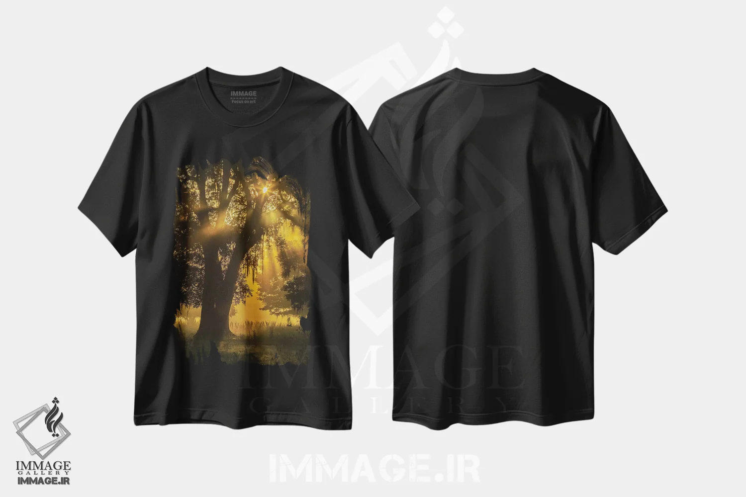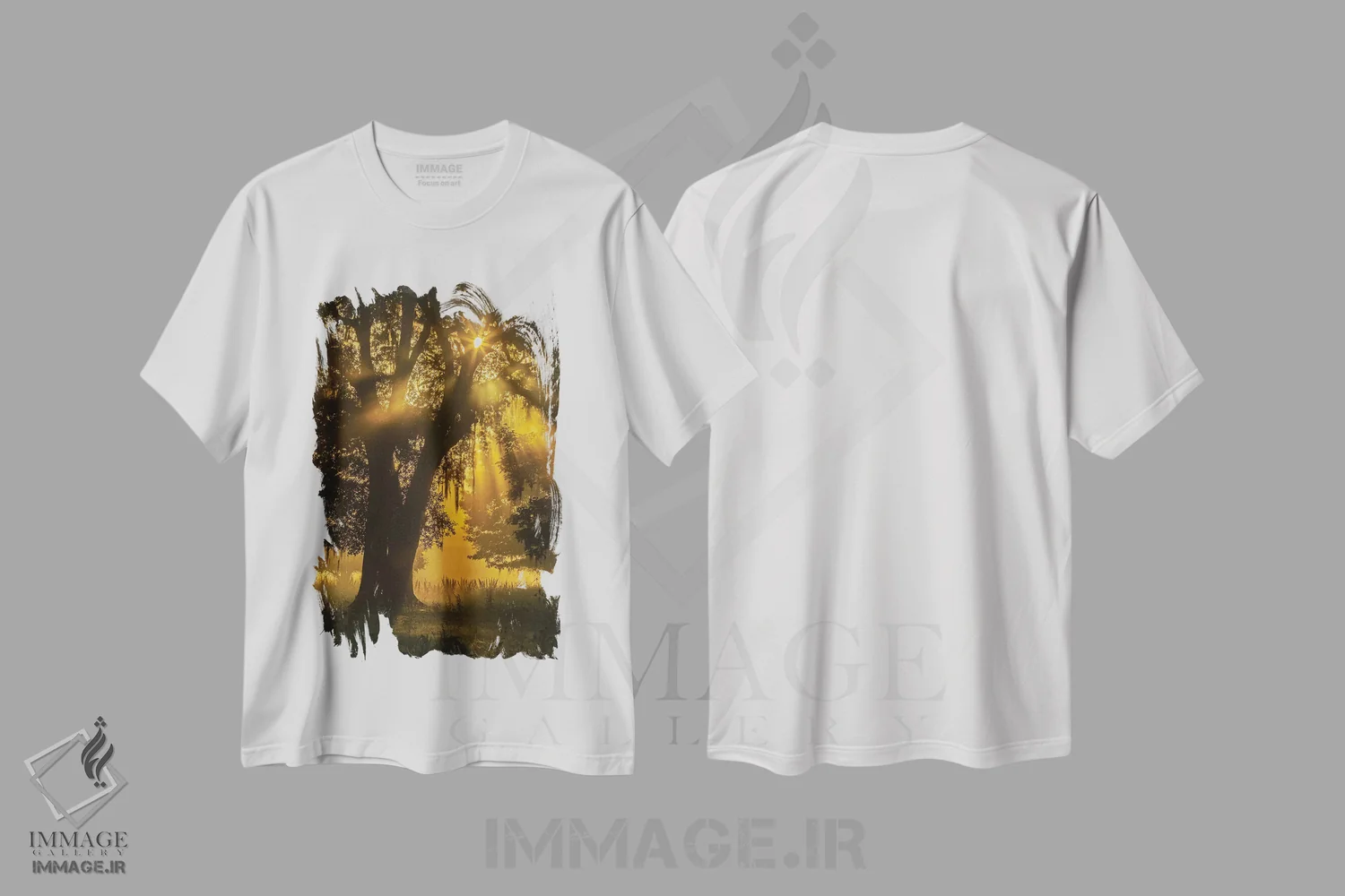 تی شرت «سیلوئت درخت در مه طلوع»؛ مینیمالیسم طبیعت