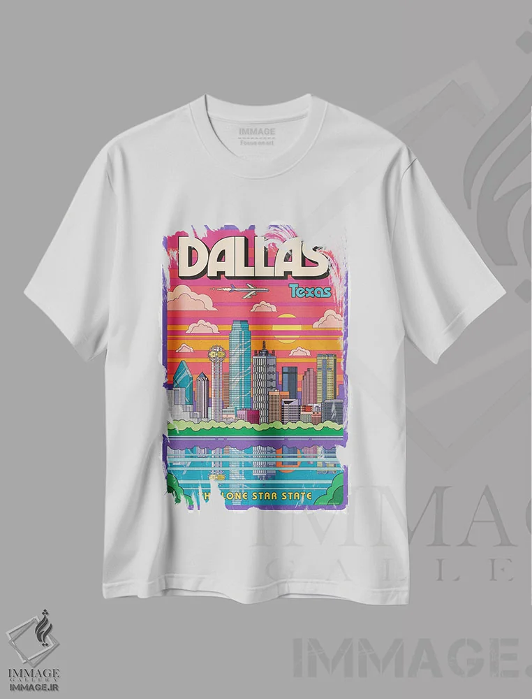 تیشرت طرح دار پوستر سفر پاپ آرت دالاس اثر جیم زانیسر