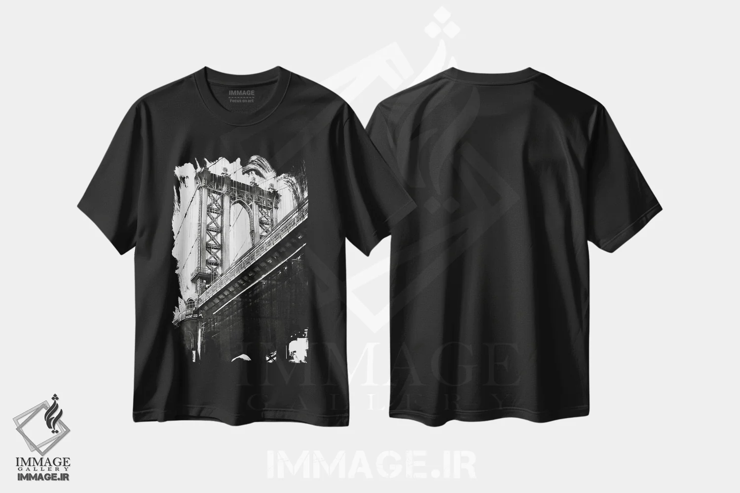 تیشرت مشکی طرح دار پل منهتن، هنر تزئینی سیاه و سفید اثر یوهان زلنین | immage.ir