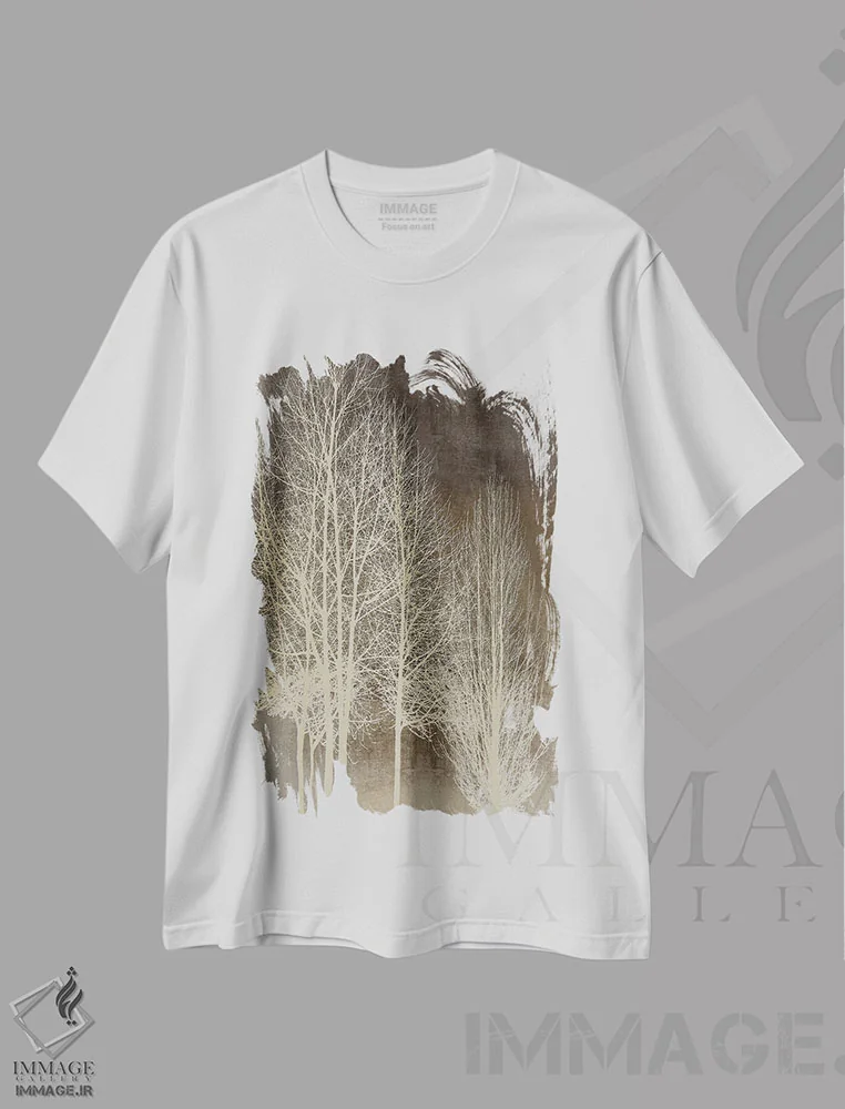 تیشرت طرح دار درختان روی پنل قهوه ای I اثر کیت بنت