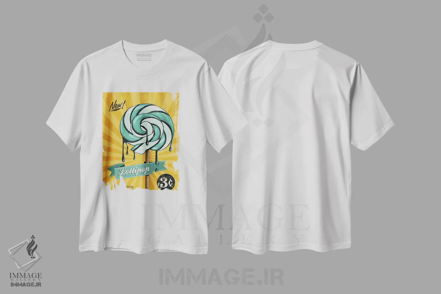 تیشرت سفید طرح دار آب نبات چوبی، هنر فاخر معاصر اثر استر کی | فروشگاه ایماژ