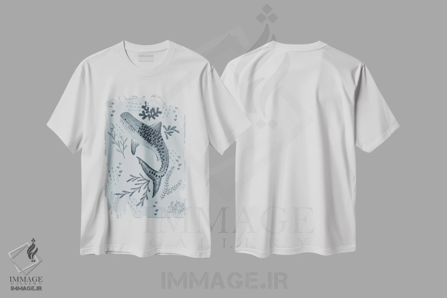 تیشرت سفید طرح دار کوسه ببری، دکور معاصر اثر کلسی امبلو | فروشگاه ایماژ