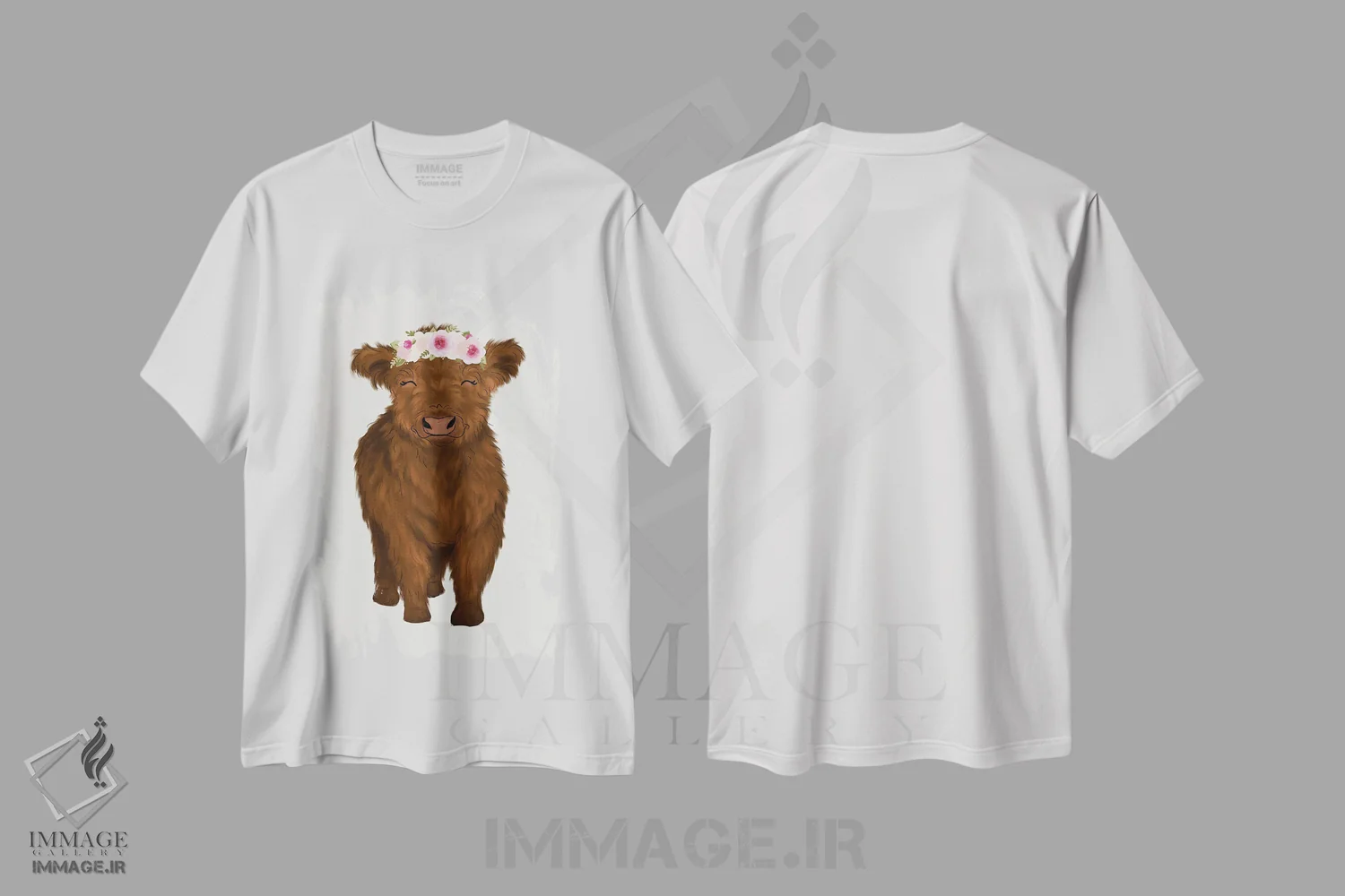تی شرت «گوساله هایلند بچه با تاج گل»؛ روایت لطافت روستایی