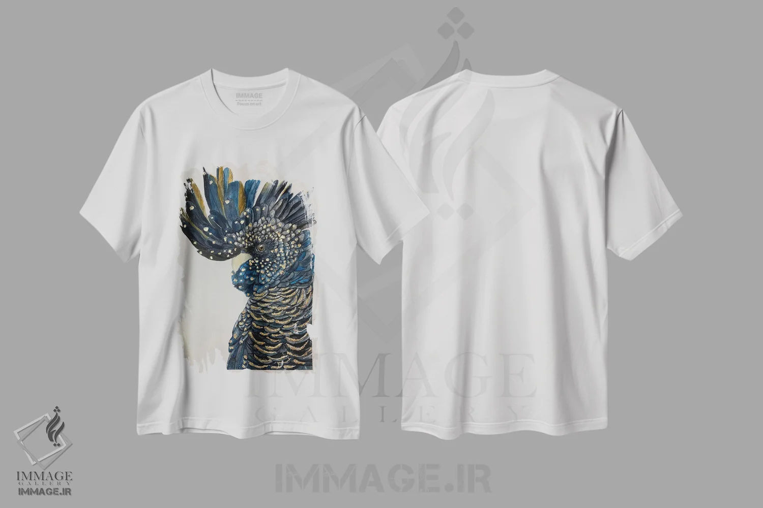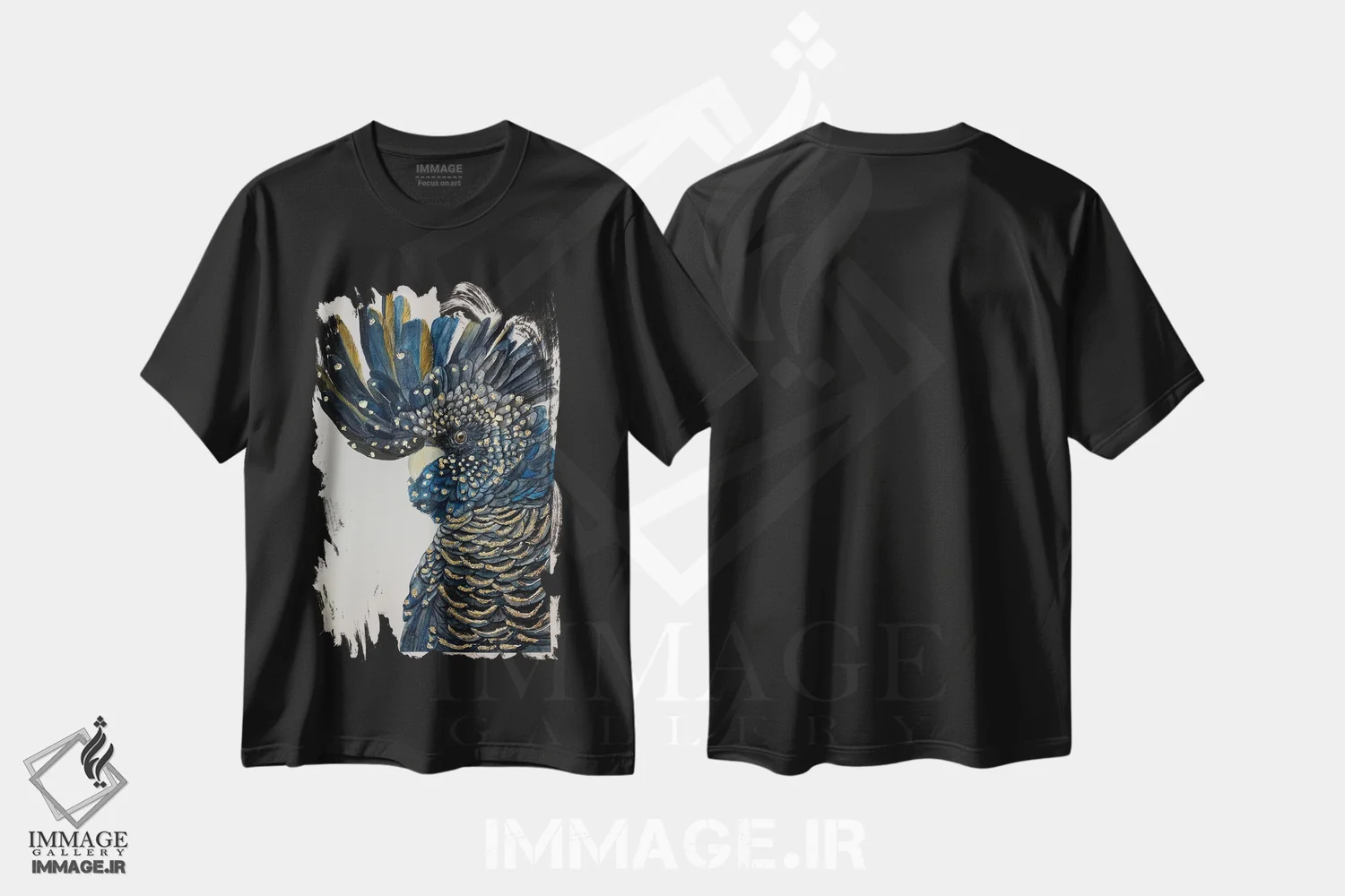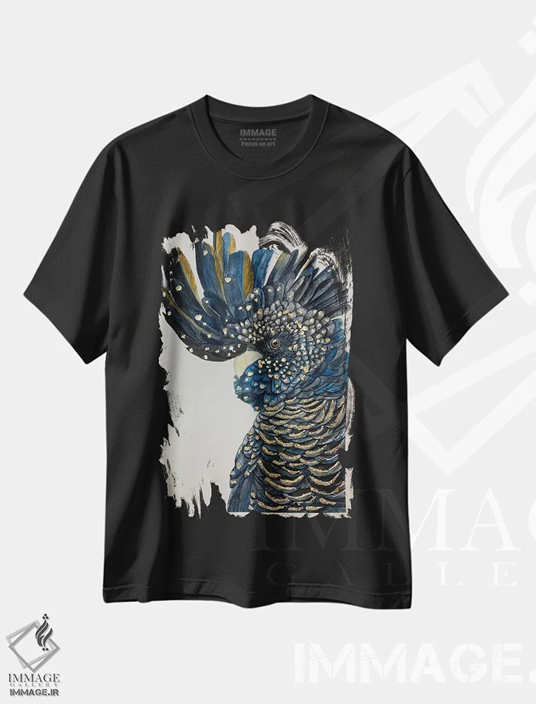 تیشرت مشکی طرح دار کاکاتو سیاه آبی، مدیوم اثر لوسیا کازاردووا | immage.ir