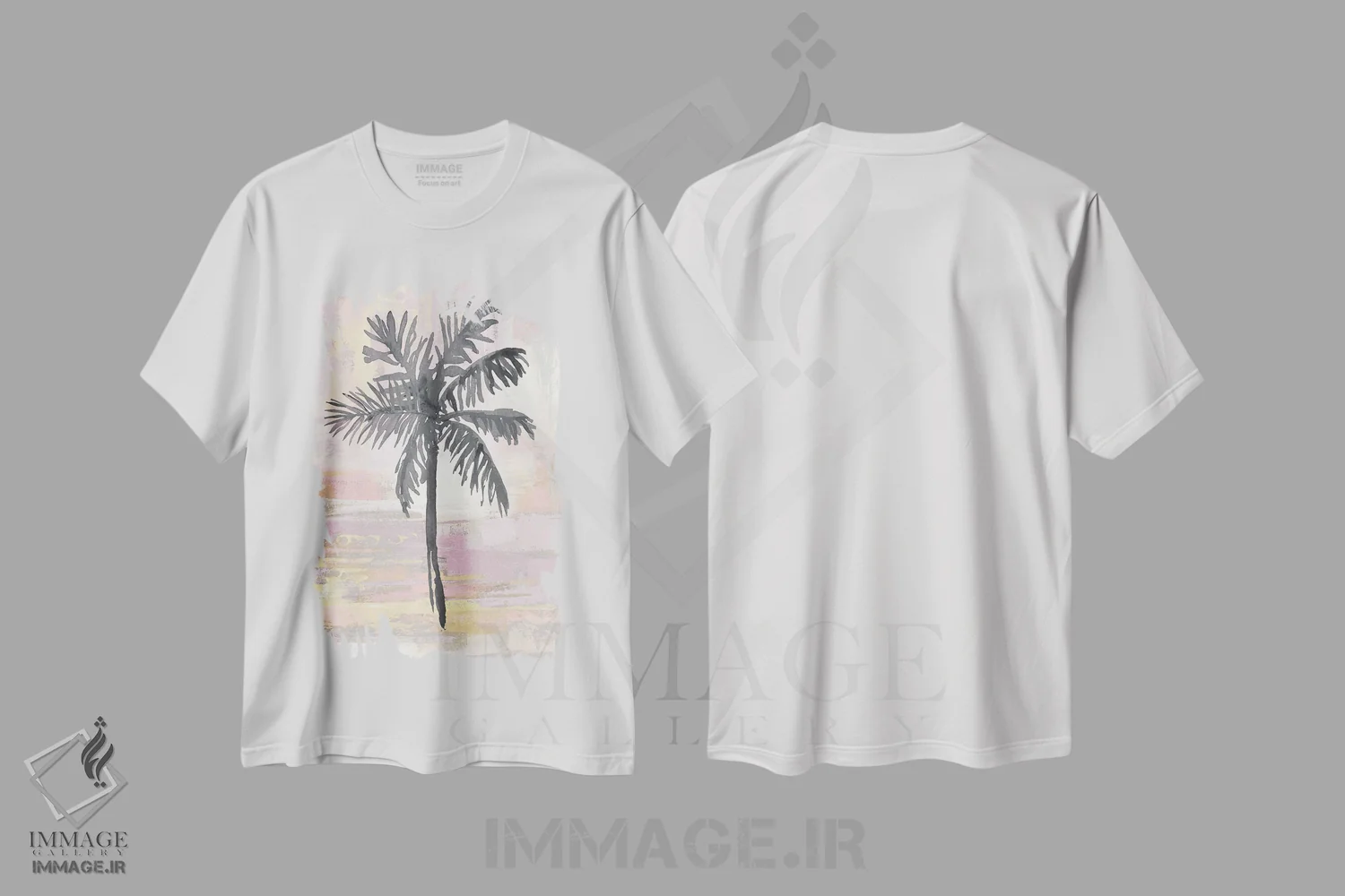 لطافت رنگ در تی شرت «نخل انتزاعی»؛ ترکیب کرم و صورتی برای روزمره