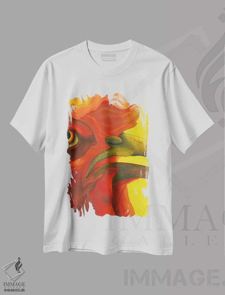تی شرت طرح «خروس در آتش»؛ انرژی روستایی با جلوه هنری