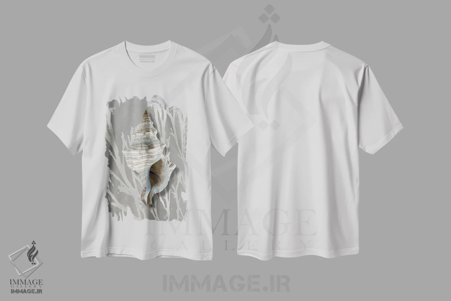 تیشرت طرح دار مرجان صدفی نقره ای روی خاکستری III اثر کارولین کلی