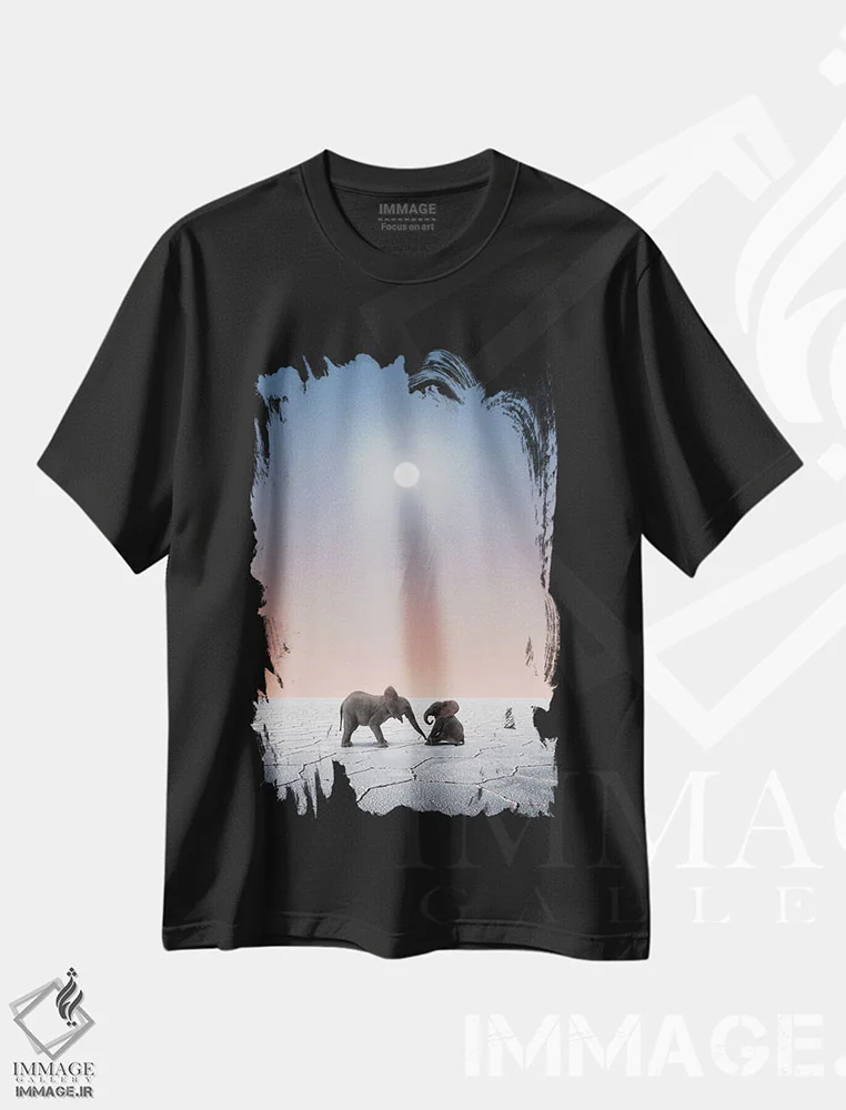 تی شرت «فیل ها در صحرا»؛ ترکیب شکوه حیوانات و آرامش بیابان