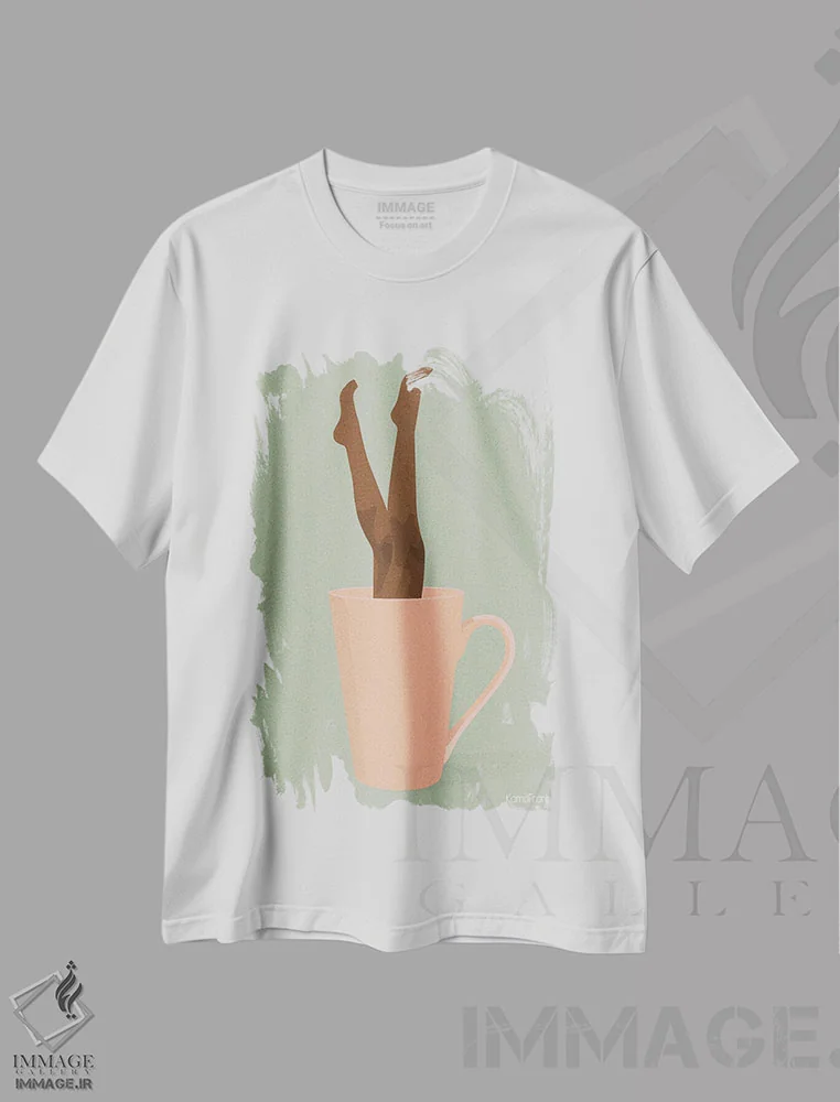 تیشرت سفید طرح دار فنجان مراقبت از خود، هنر آمریکایی آفریقایی تبار اثر کمو فرانک | immage.ir