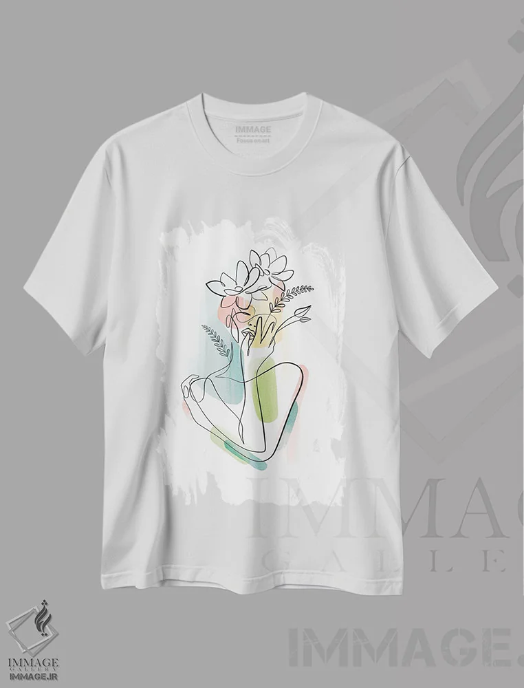 تی شرت هنری «زن با سر گل شماره ۲»؛ طراحی خطی برای استایل های لطیف