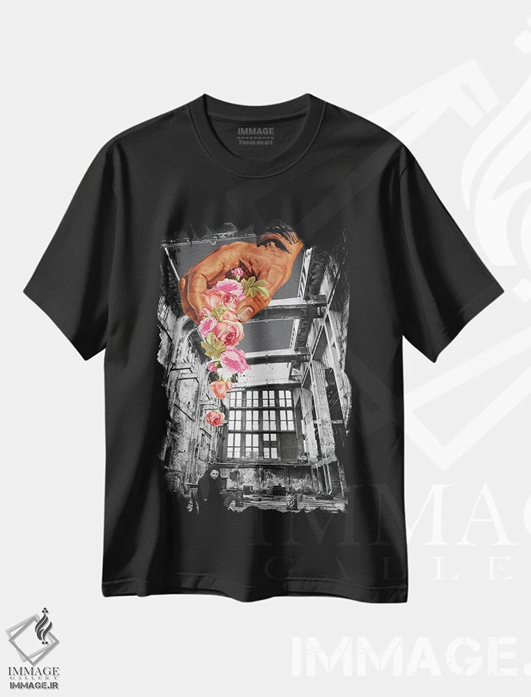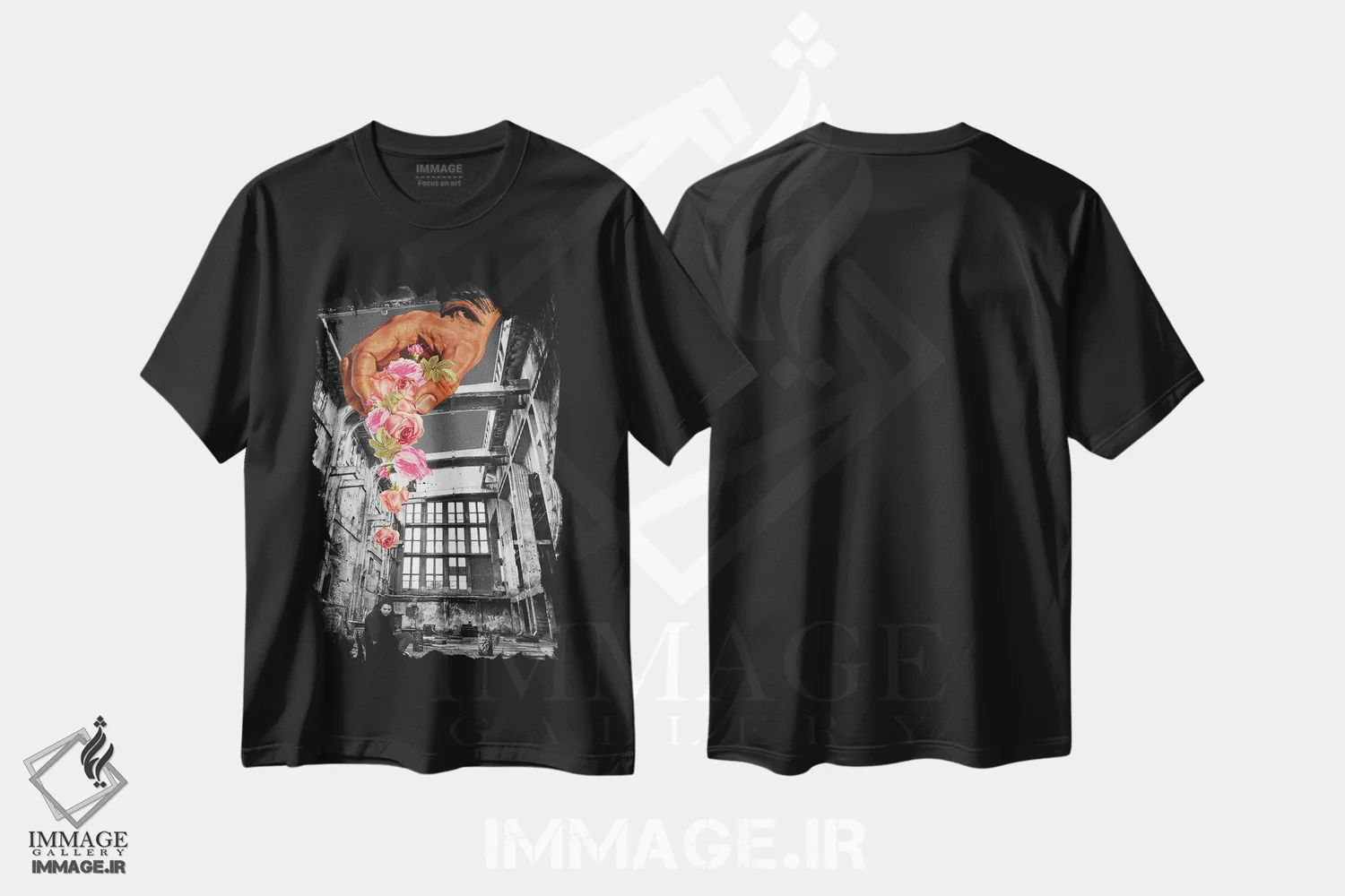 تیشرت مشکی طرح دار مهربان، عکاسی ترکیبی اثر کیکی سی لندن | immage.ir
