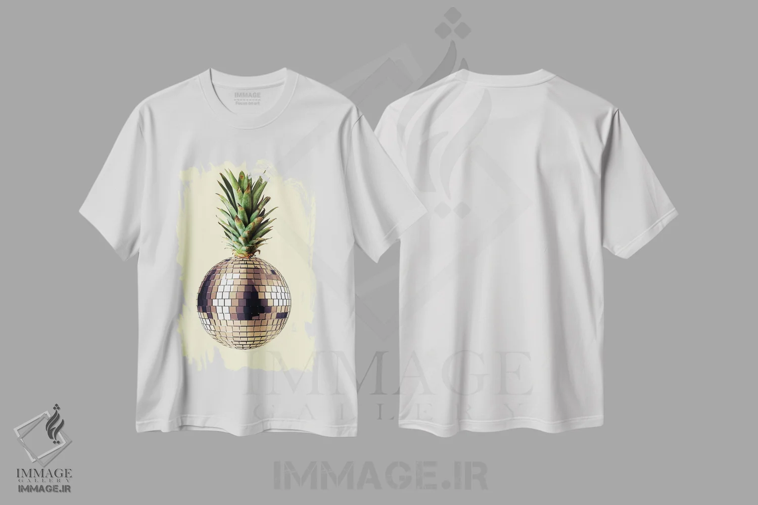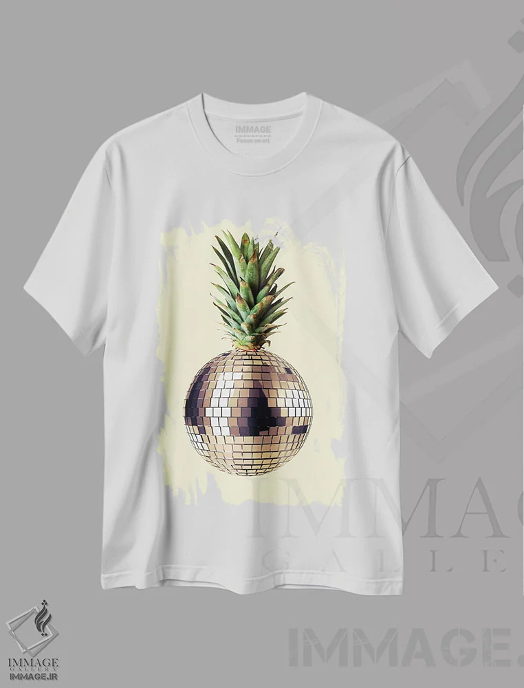تیشرت سفید طرح دار مهمانی آناناس، عکاسی ترکیبی اثر کیکی سی لندن | immage.ir
