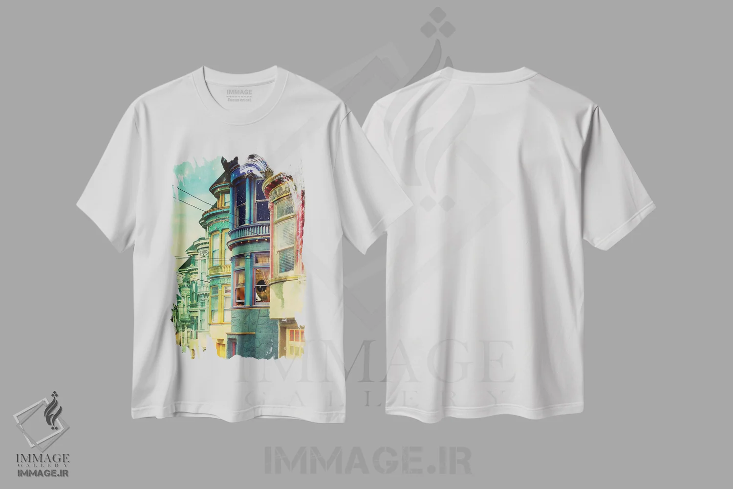 تیشرت سفید طرح دار پشت پنجره، عکاسی ترکیبی اثر کیکی سی لندن | فروشگاه ایماژ