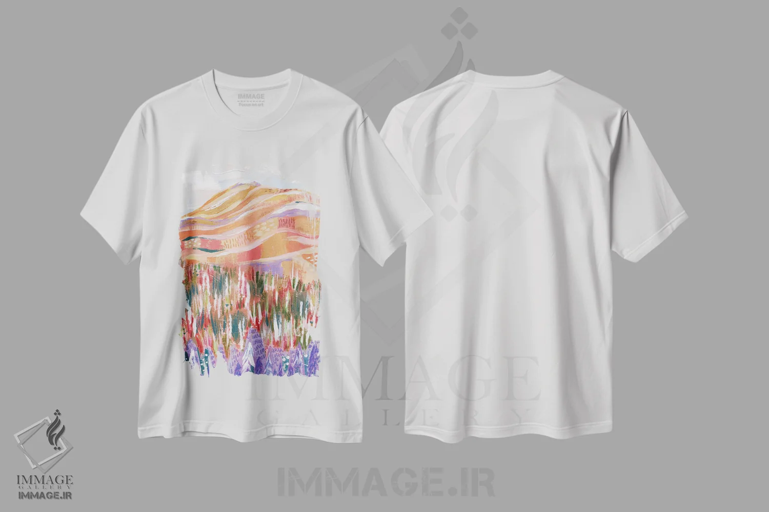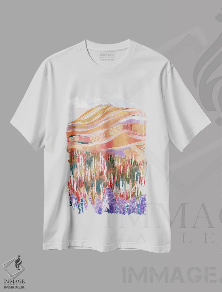 تیشرت سفید طرح دار کوه رنگارنگ، دکور بوهمی اثر کارتیکا پارامیتا | immage.ir
