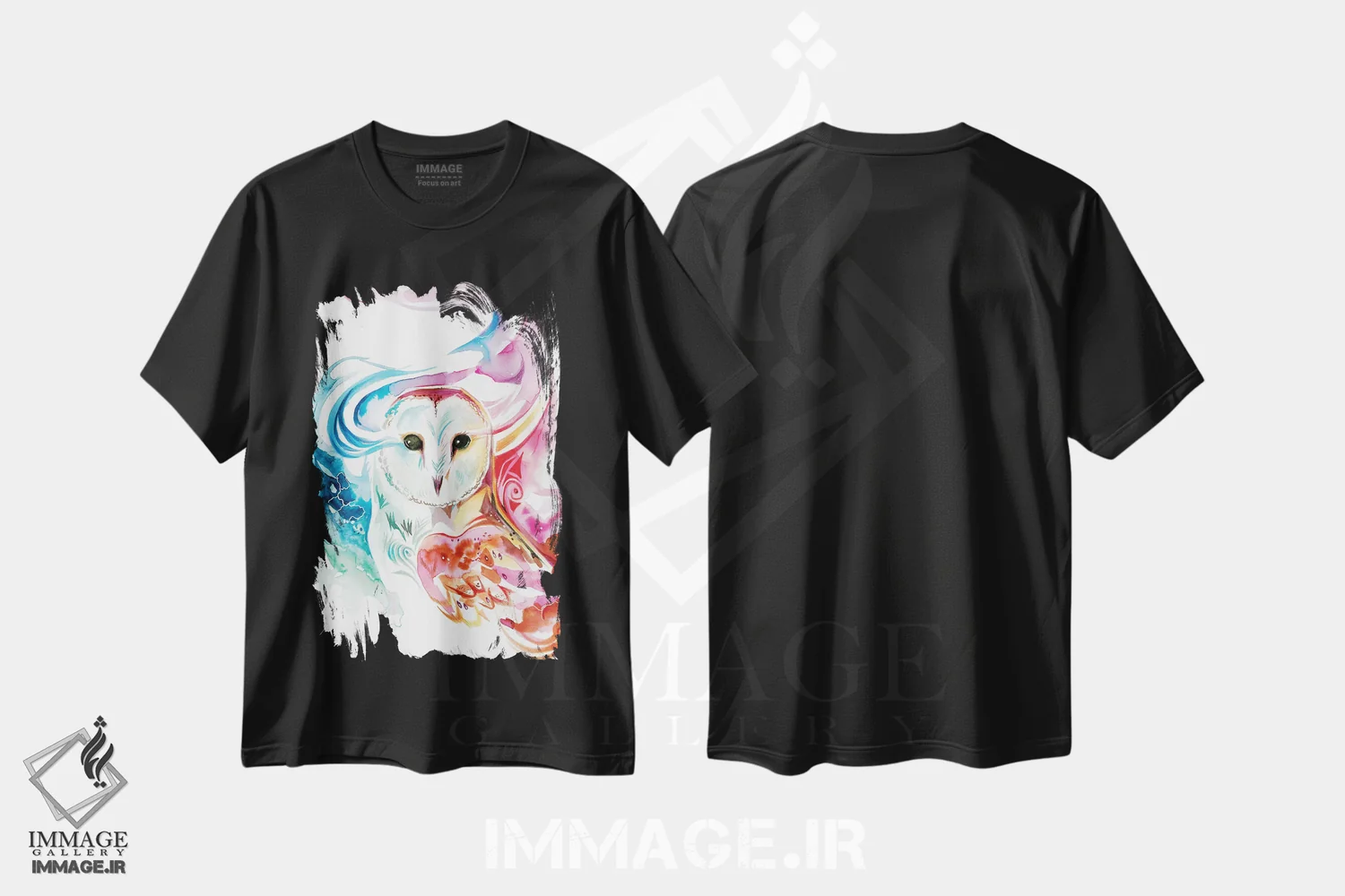 تیشرت مشکی طرح دار جغد رنگین کمانی، تزئینی اثر کتی لیپسکامب | immage.ir