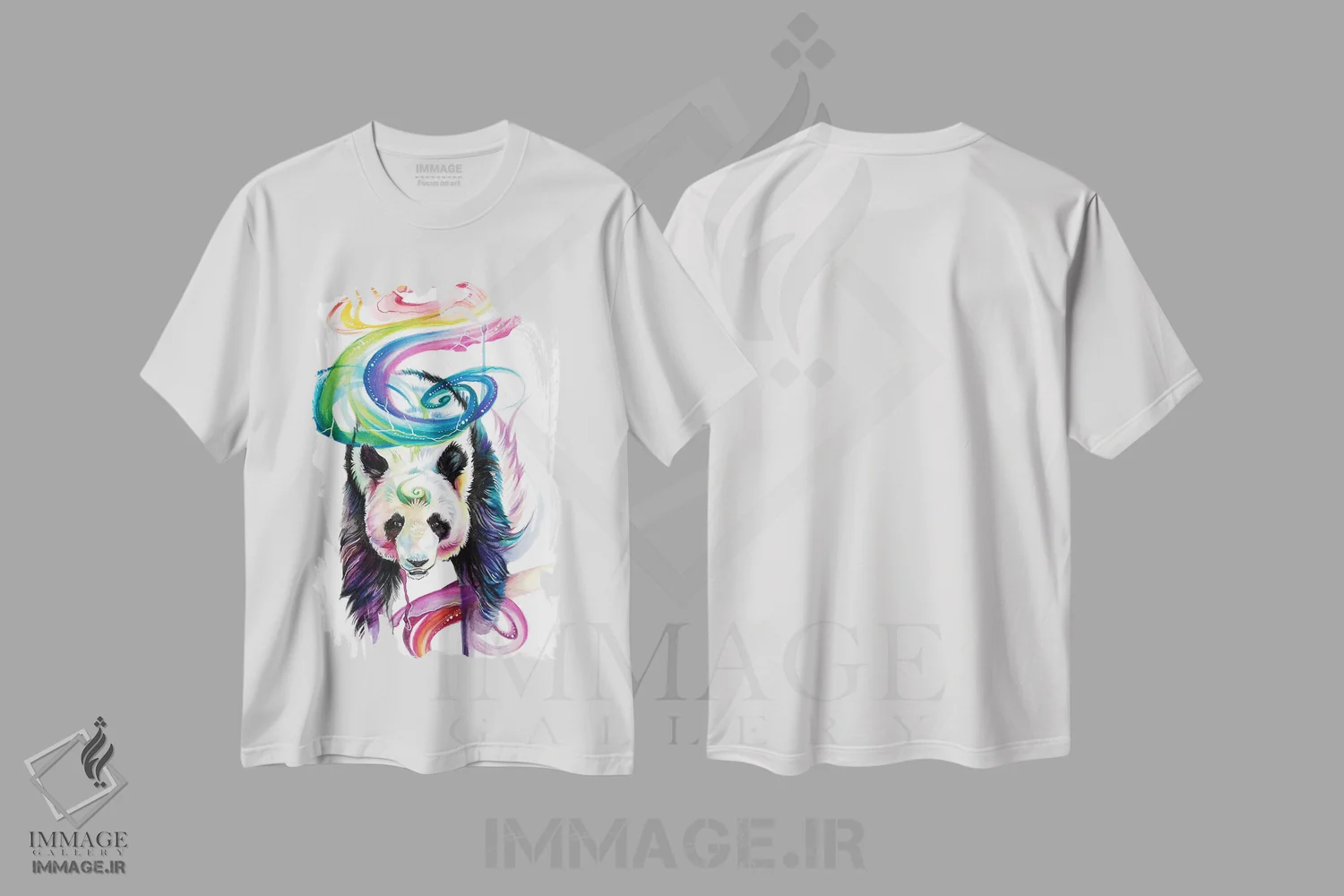 تیشرت سفید طرح دار پاندای رنگین کمانی، تزئینی اثر کتی لیپسکامب | immage.ir