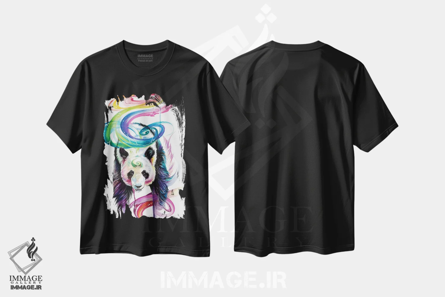 تیشرت مشکی طرح دار پاندای رنگین کمانی، تزئینی اثر کتی لیپسکامب | فروشگاه ایماژ