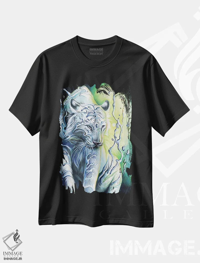 تیشرت مشکی طرح دار روح ببر آبی، تزئینی اثر کتی لیپسکامب | immage.ir