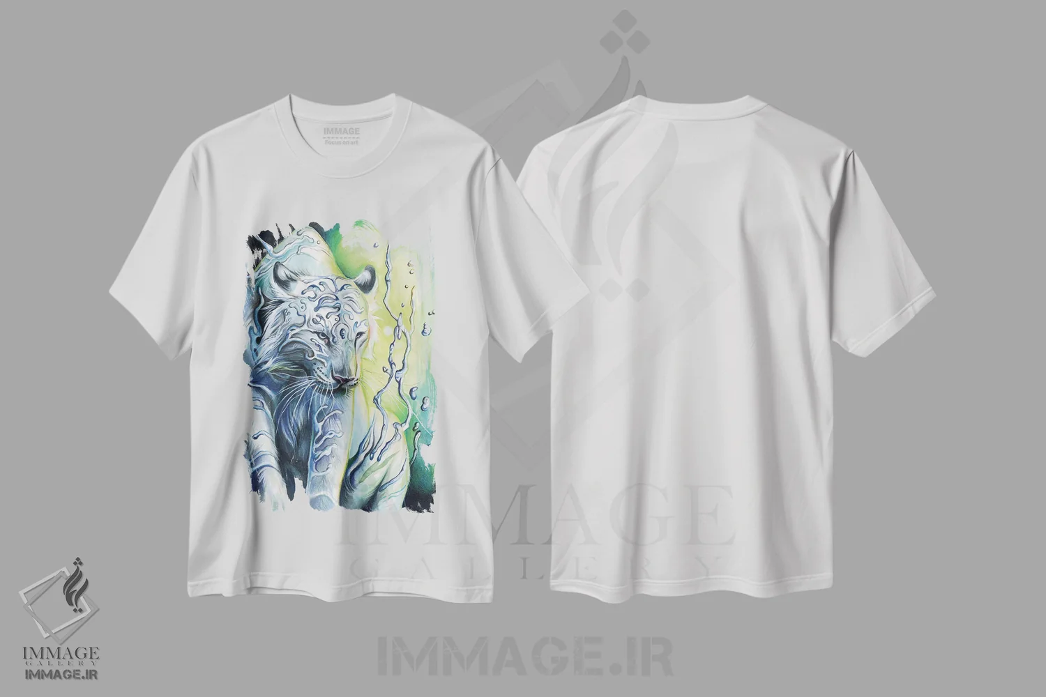 تیشرت سفید طرح دار روح ببر آبی، تزئینی اثر کتی لیپسکامب | فروشگاه ایماژ