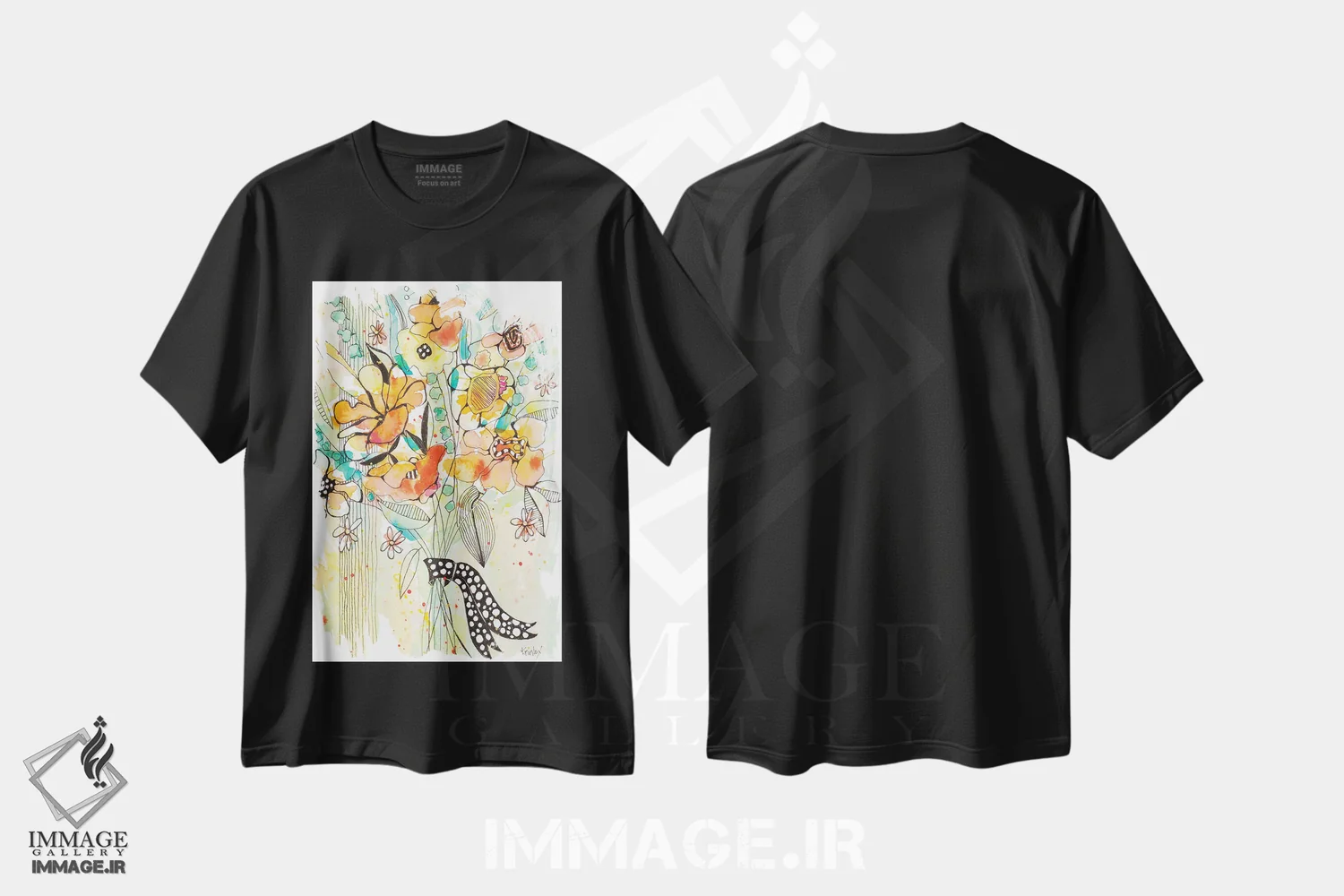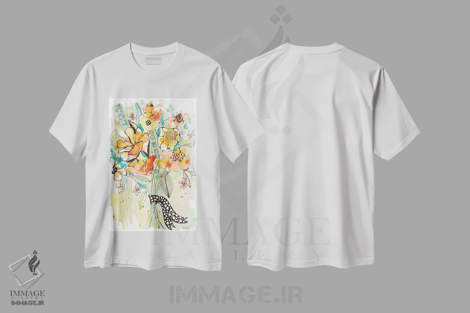تیشرت طرح دار گل های سبز و صورتی اثر کرینلاکس