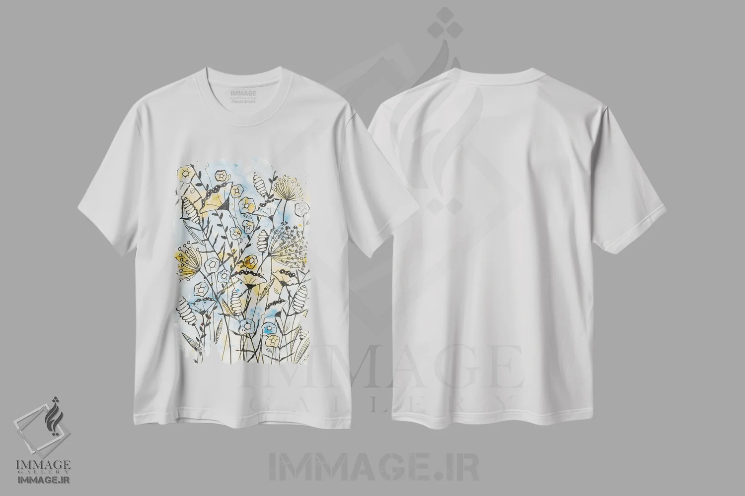 تیشرت طرح دار شکوفه های زرد و آبی اثر کرینلاکس
