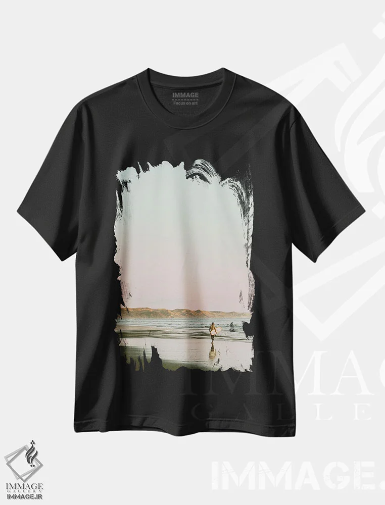 تیشرت طرح دار موج سوار در حال قدم زدن در ساحل اثر کارن منداو