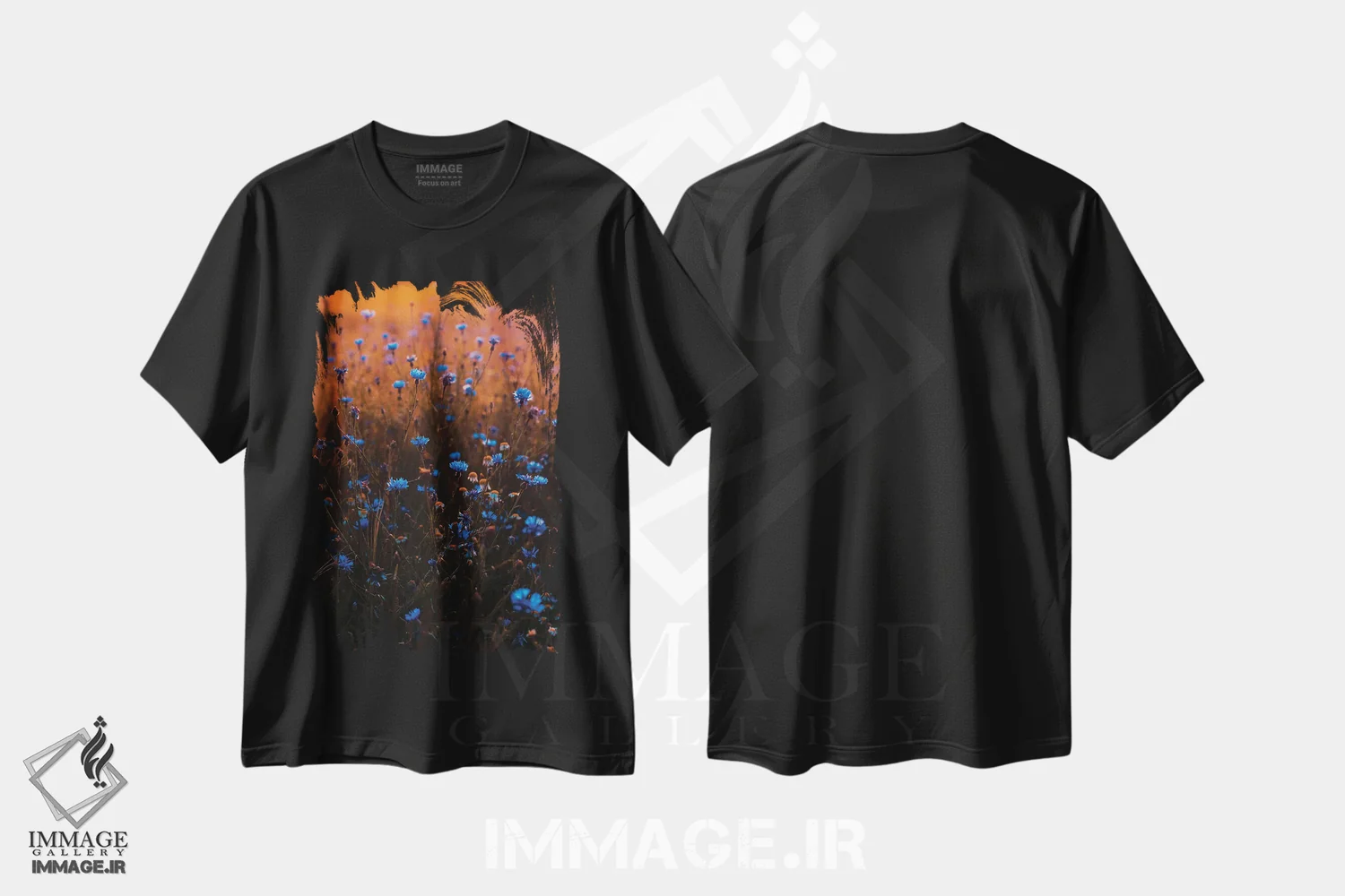 تی شرت طبیعت دوست با طرح «مزرعه گل وحشی آبی»