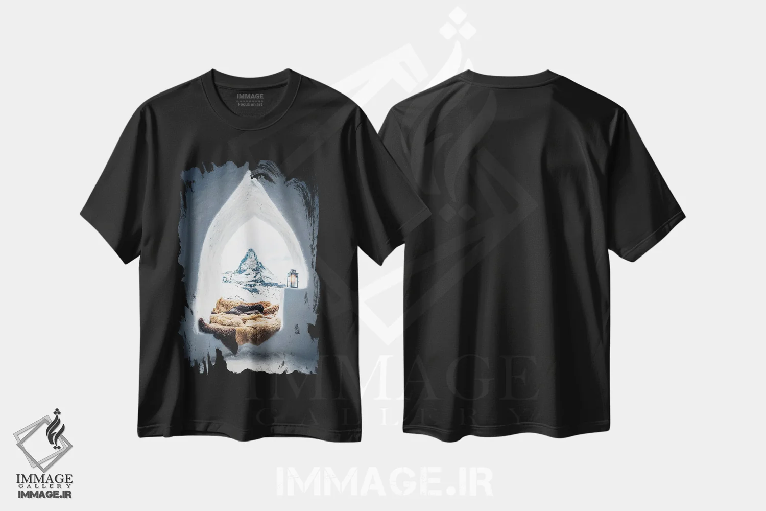 تیشرت مشکی طرح دار ایگلو با منظره کوهستان، مدیوم اثر کارن منداو | فروشگاه ایماژ