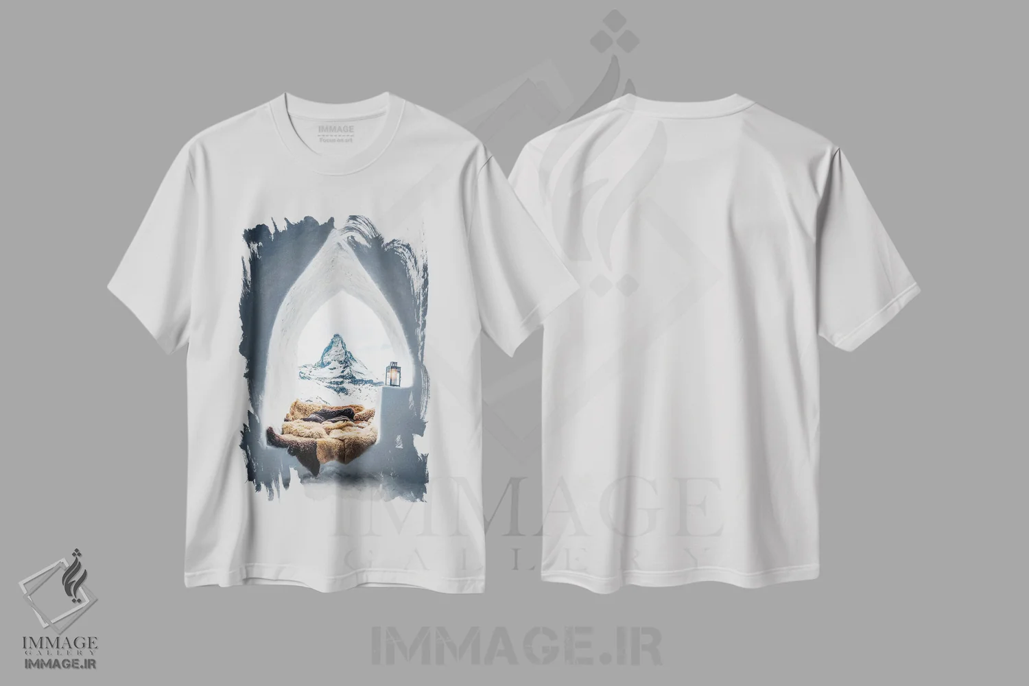 تیشرت سفید طرح دار ایگلو با منظره کوهستان، مدیوم اثر کارن منداو | immage.ir