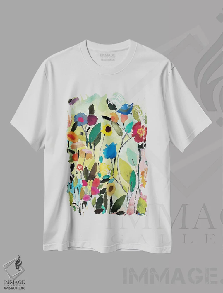 تیشرت سفید طرح دار باغ لاله، دکور معاصر اثر کیم پارکر | immage.ir